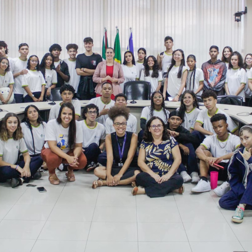 Turma de visita guiada na Sala de Reuniões da Presidência