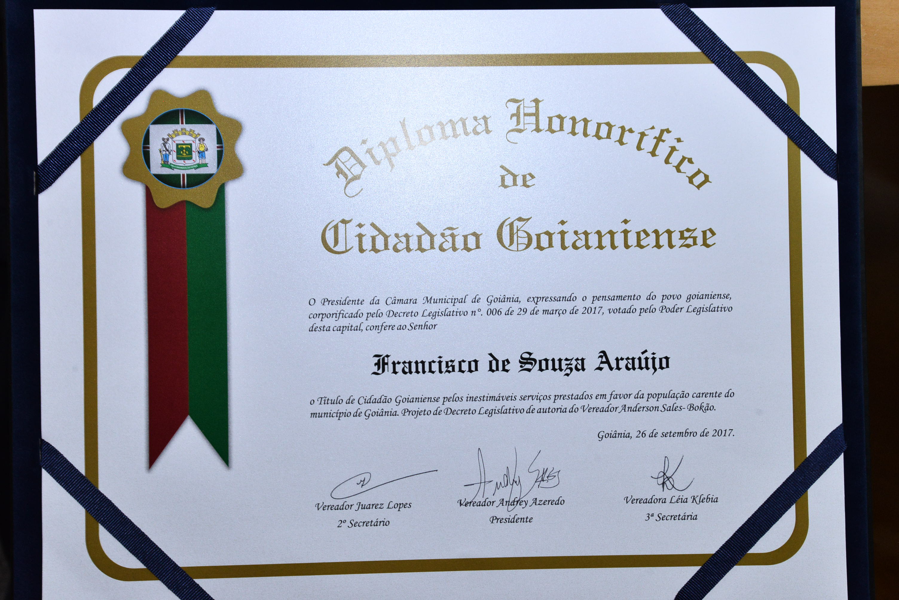 15-09-2017 Sessão Solene para entrega de título de Cidadão Goianiense ao Sr. Luiz Fortini - Fotos Antônio Silva