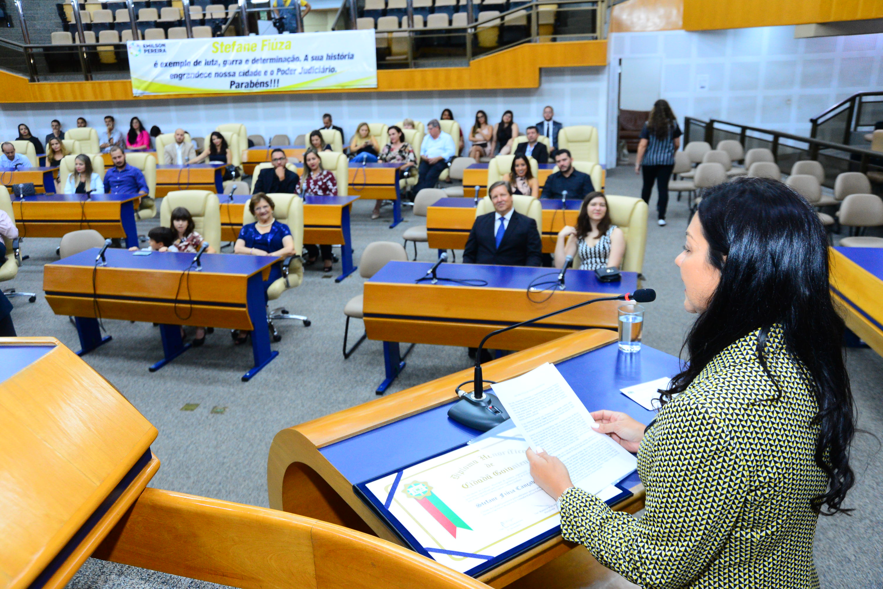 04-04-19 SESSÃO SOLENE DE ENTREGA DE TÍTULO A SENHORA STEFANE FIÚZA CANÇADO MACHADO. FOTOS ANTONIO