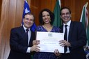 04-04-19 SESSÃO SOLENE DE ENTREGA DE TÍTULO A SENHORA STEFANE FIÚZA CANÇADO MACHADO. FOTOS ANTONIO