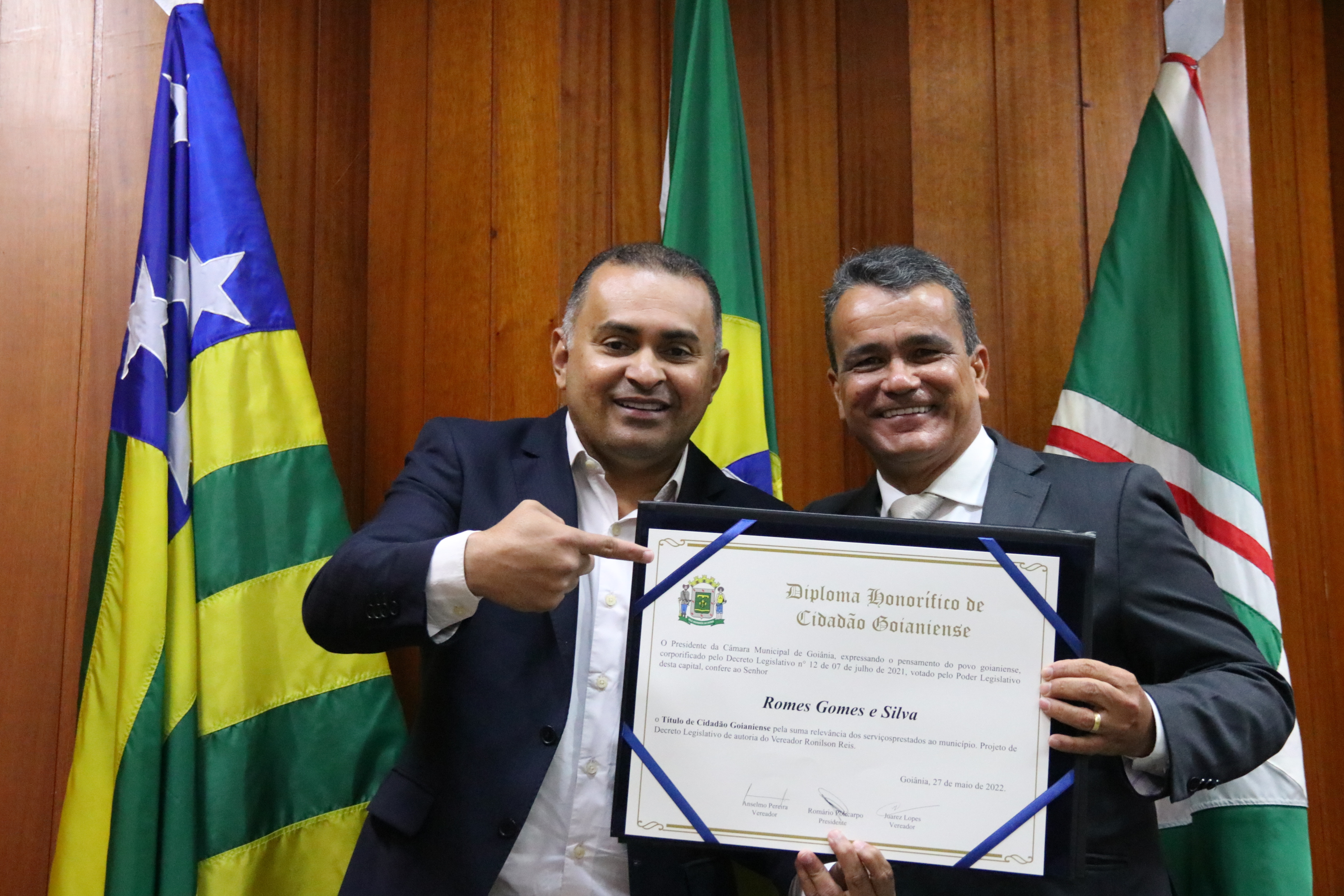 27/05/2022 - Sessão Solene de Entrega de Título de Cidadão Goianiense ao Sr. Romes Gomes e Silva - Fotos Fabiano Araújo