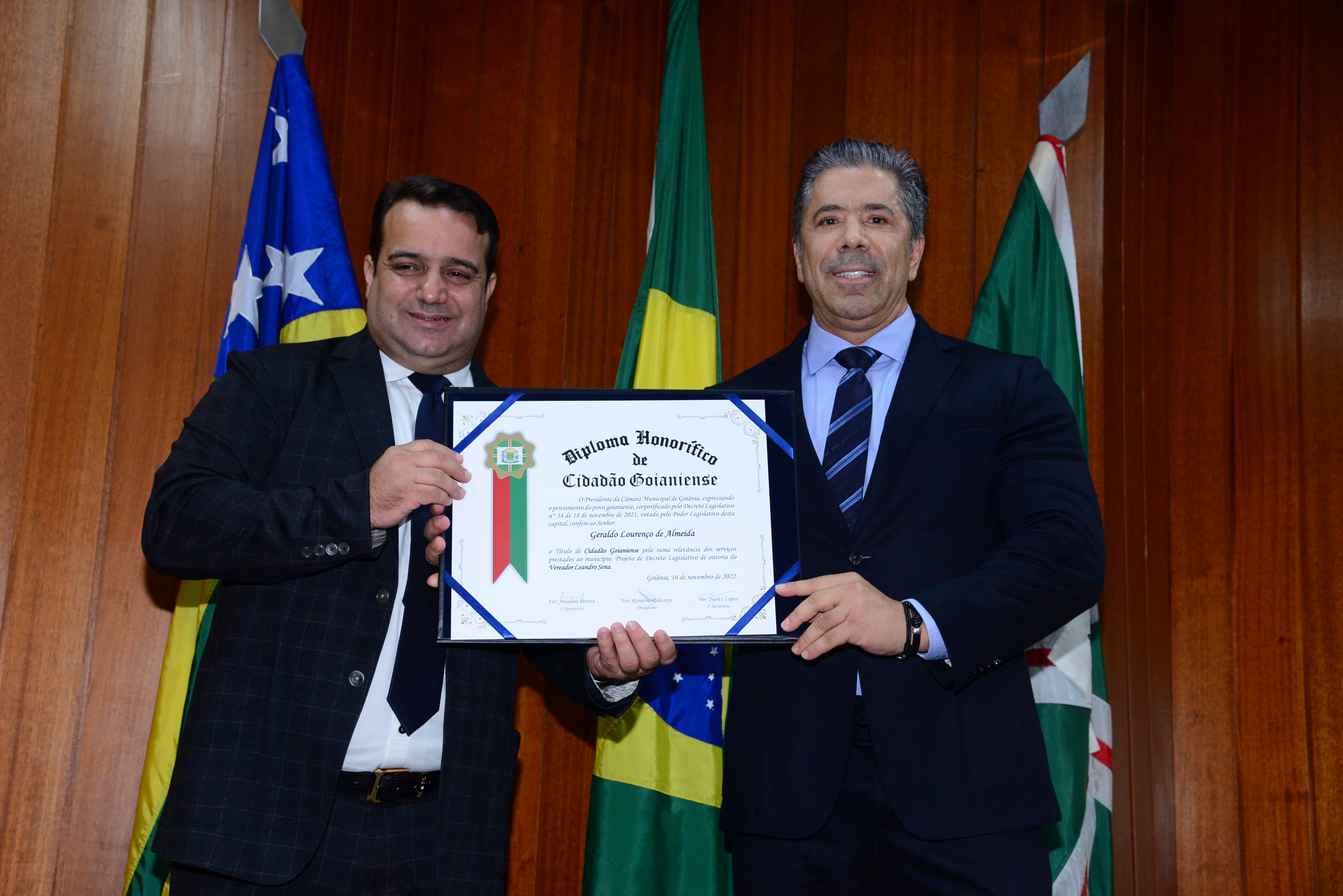 16-11-2022 SESSÃO SOLENE ENTREGA DE TITULOS DE CIDADANIA GOIANIENSE - EDGAR TEIXEIRA E GERALDO ALMEDA FOTO ANTONIO SILVA