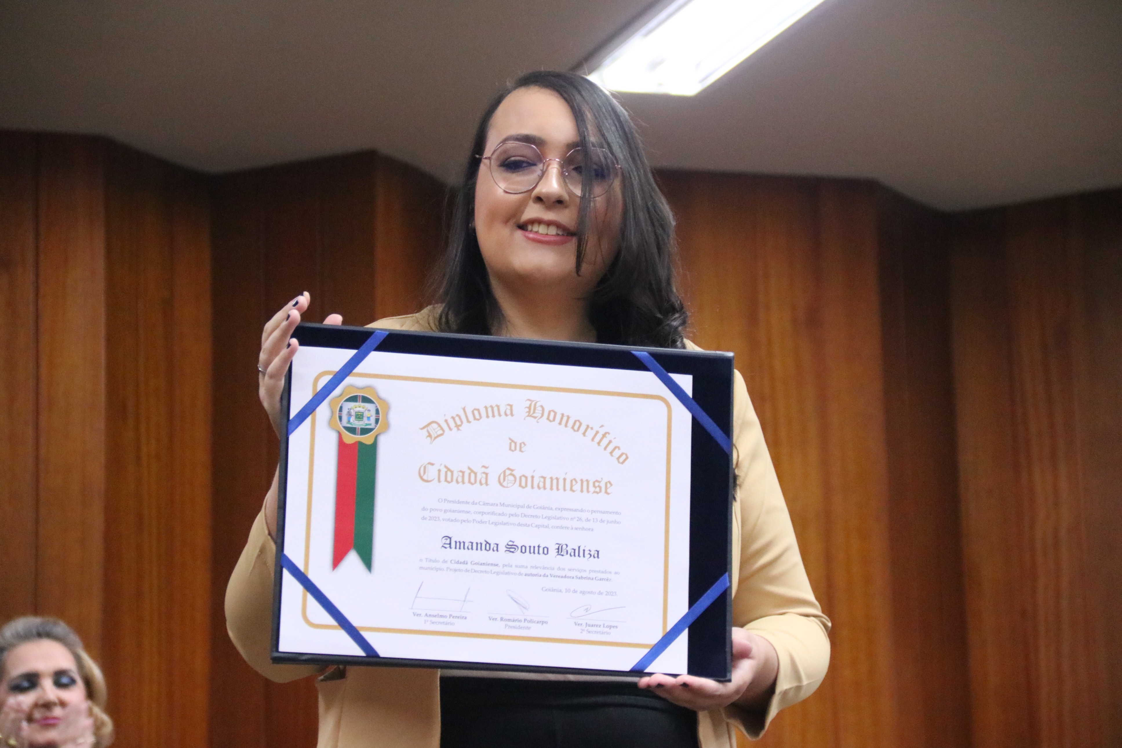 10/8/2023 - Sessão Solene: Entrega de Título de Cidadania Goianiense à Sra. Amanda Souto Baliza