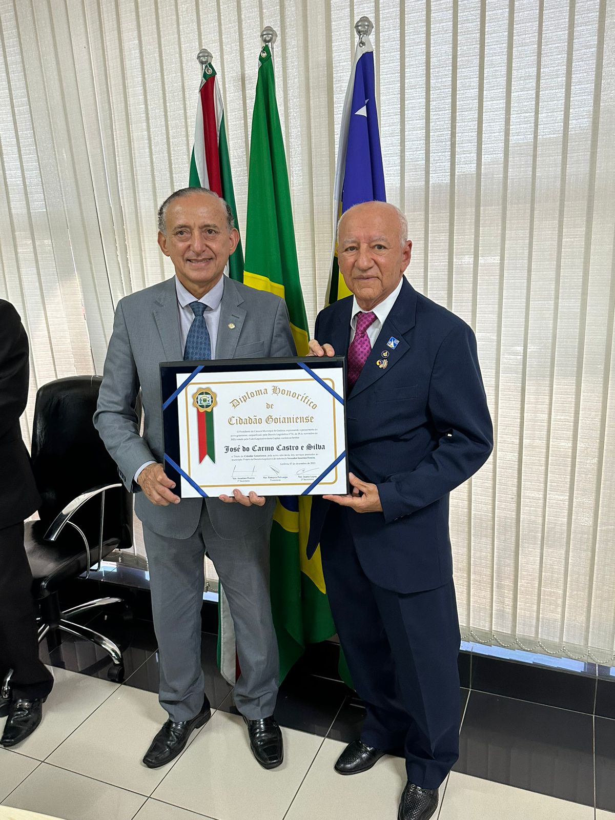 7/12/2023 - Sessão Solene: Entrega de Título de Cidadania Goianiense (Sr. José do Carmo Castro e Silva)