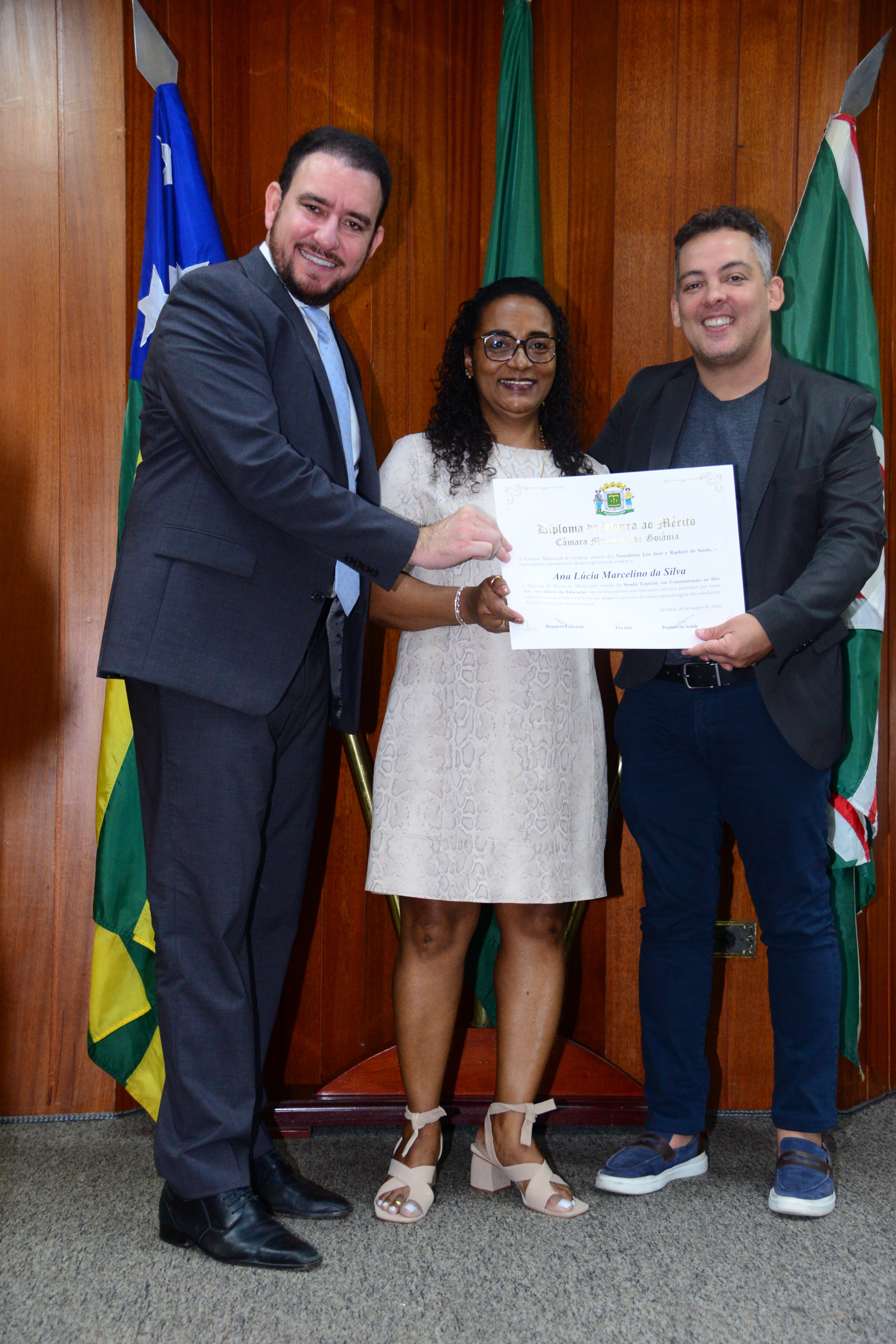 13/3/2023 - Sessão Solene: Entrega de Título de Cidadania Goianiense (Péricles de Castro e Silva; Eduardo Gomes dos Santos)