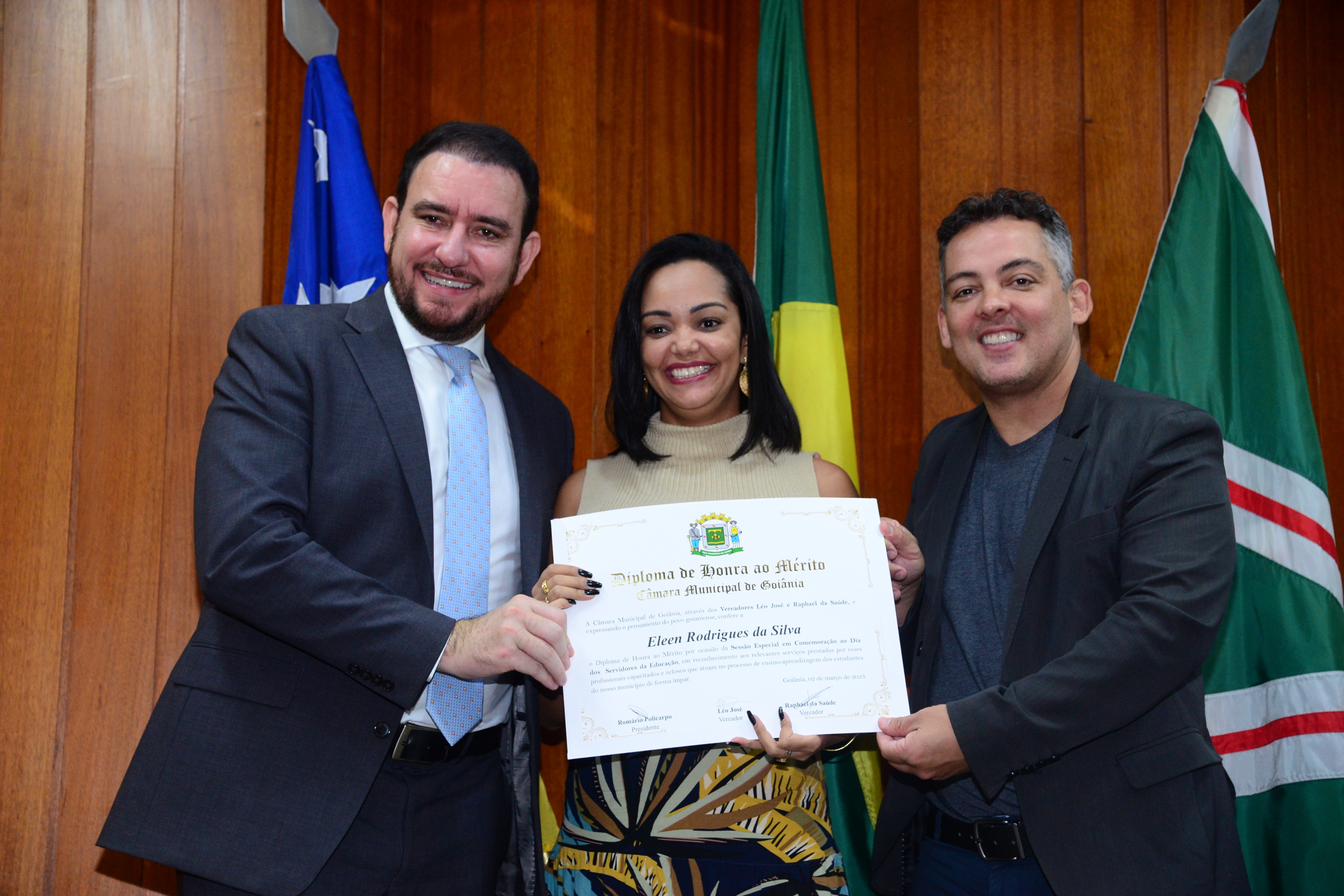 13/3/2023 - Sessão Solene: Entrega de Título de Cidadania Goianiense (Péricles de Castro e Silva; Eduardo Gomes dos Santos)