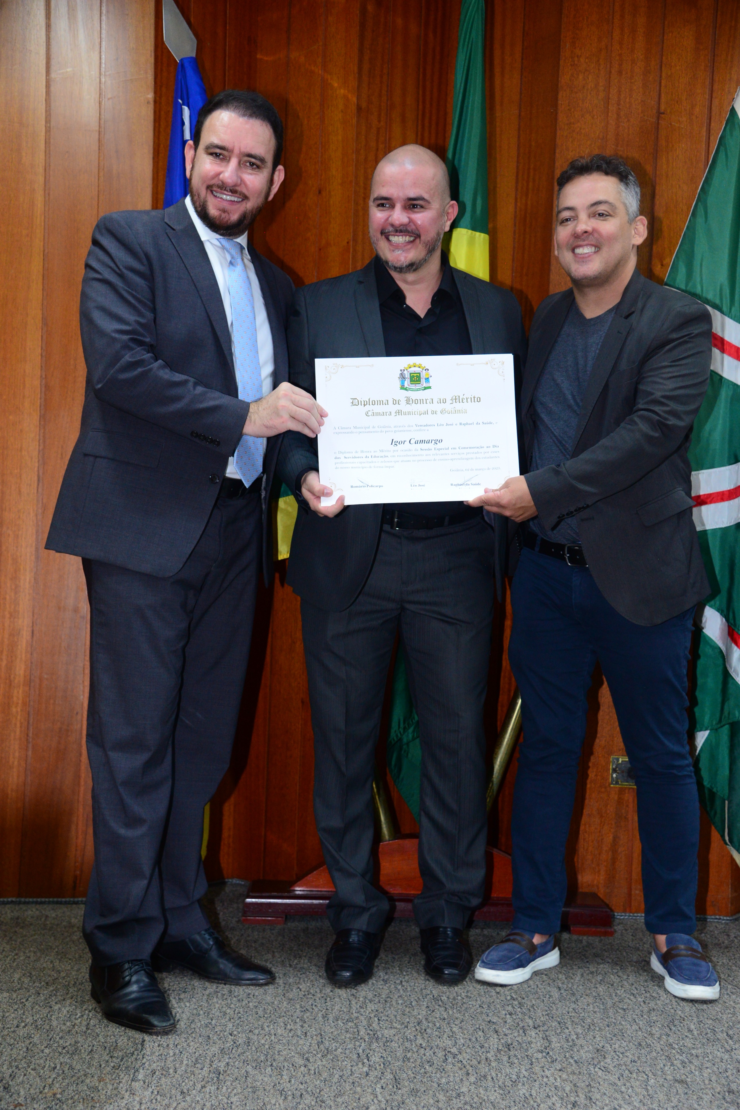 13/3/2023 - Sessão Solene: Entrega de Título de Cidadania Goianiense (Péricles de Castro e Silva; Eduardo Gomes dos Santos)