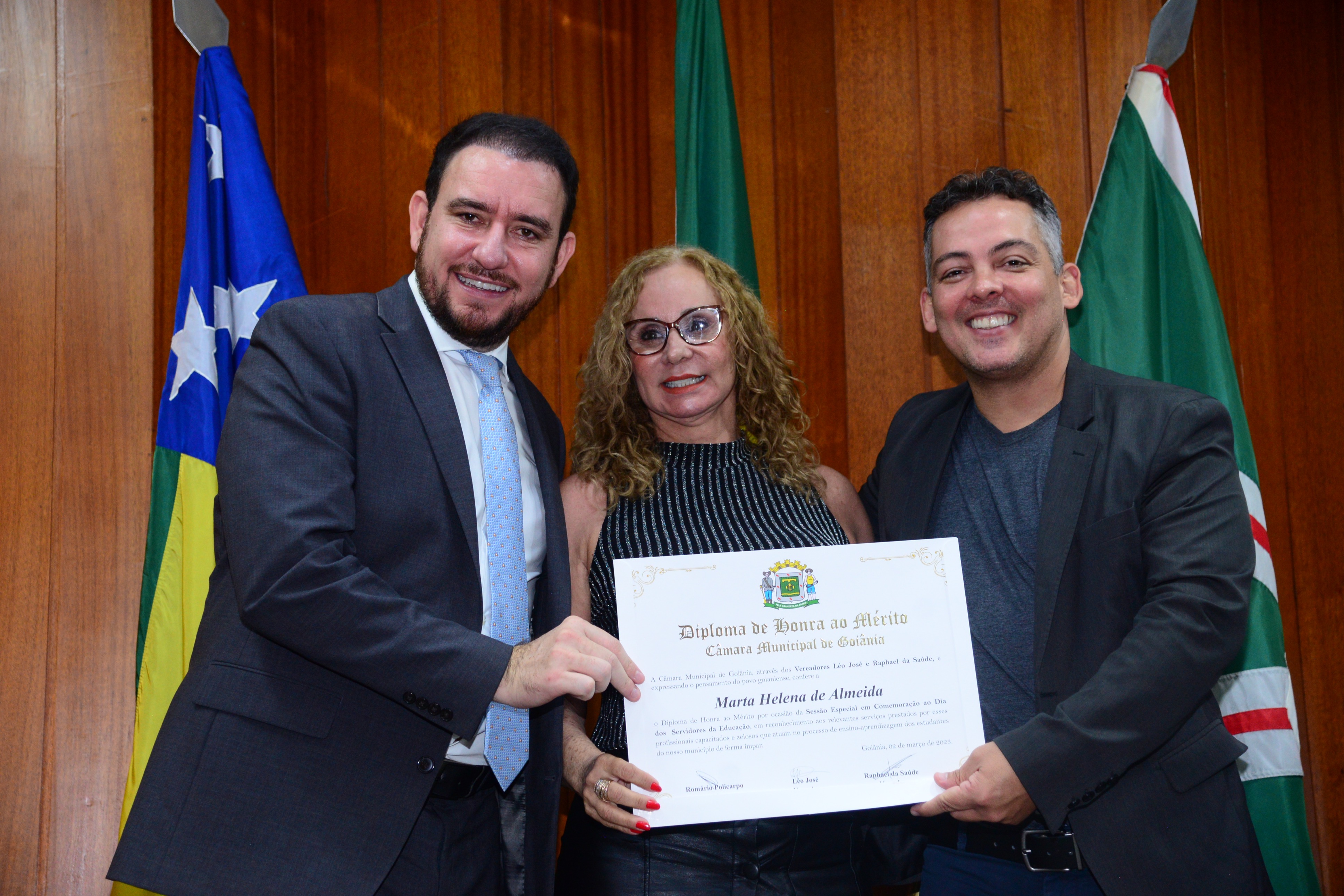 13/3/2023 - Sessão Solene: Entrega de Título de Cidadania Goianiense (Péricles de Castro e Silva; Eduardo Gomes dos Santos)