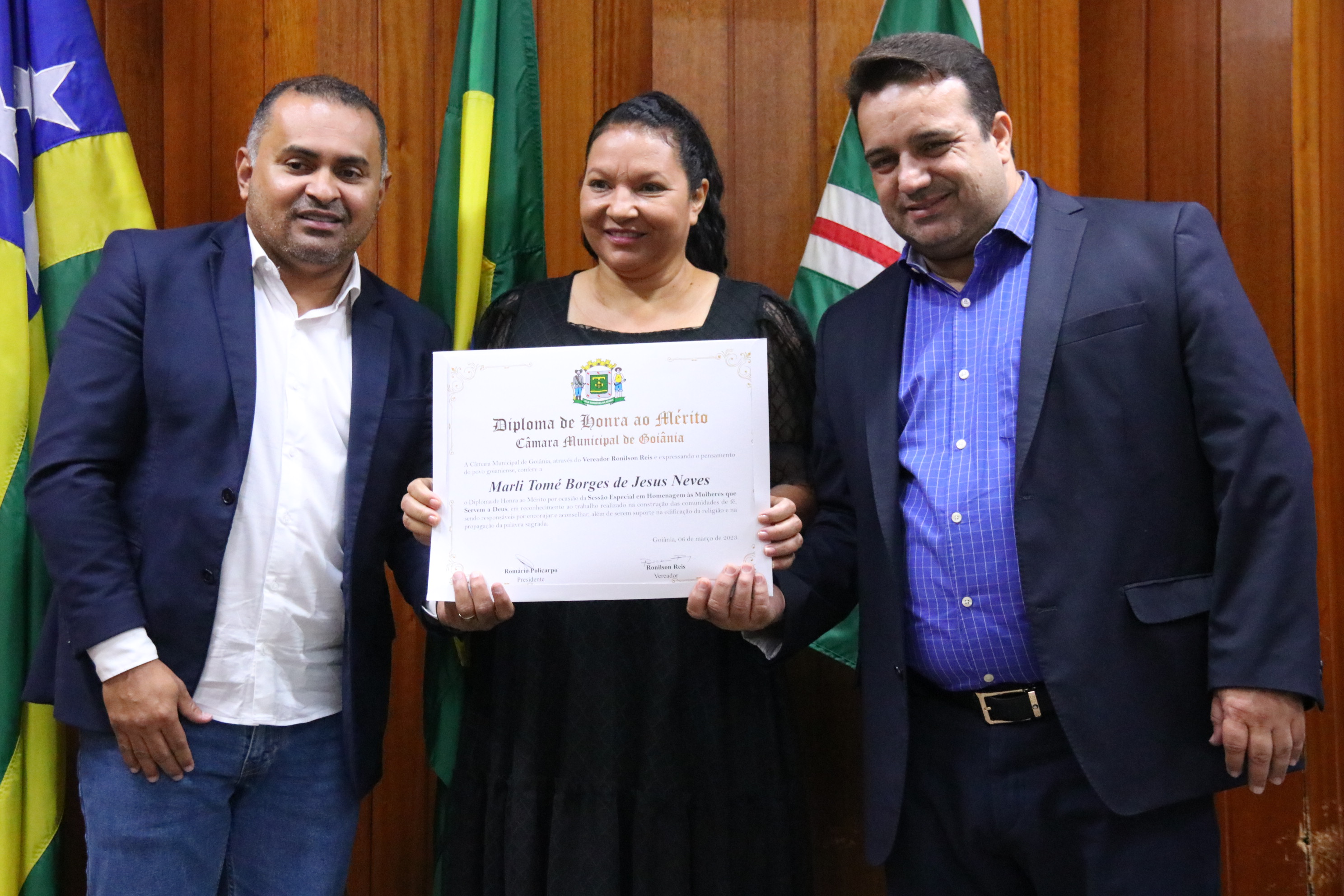 13/3/2023 - Sessão Solene: Entrega de Título de Cidadania Goianiense (Péricles de Castro e Silva; Eduardo Gomes dos Santos)