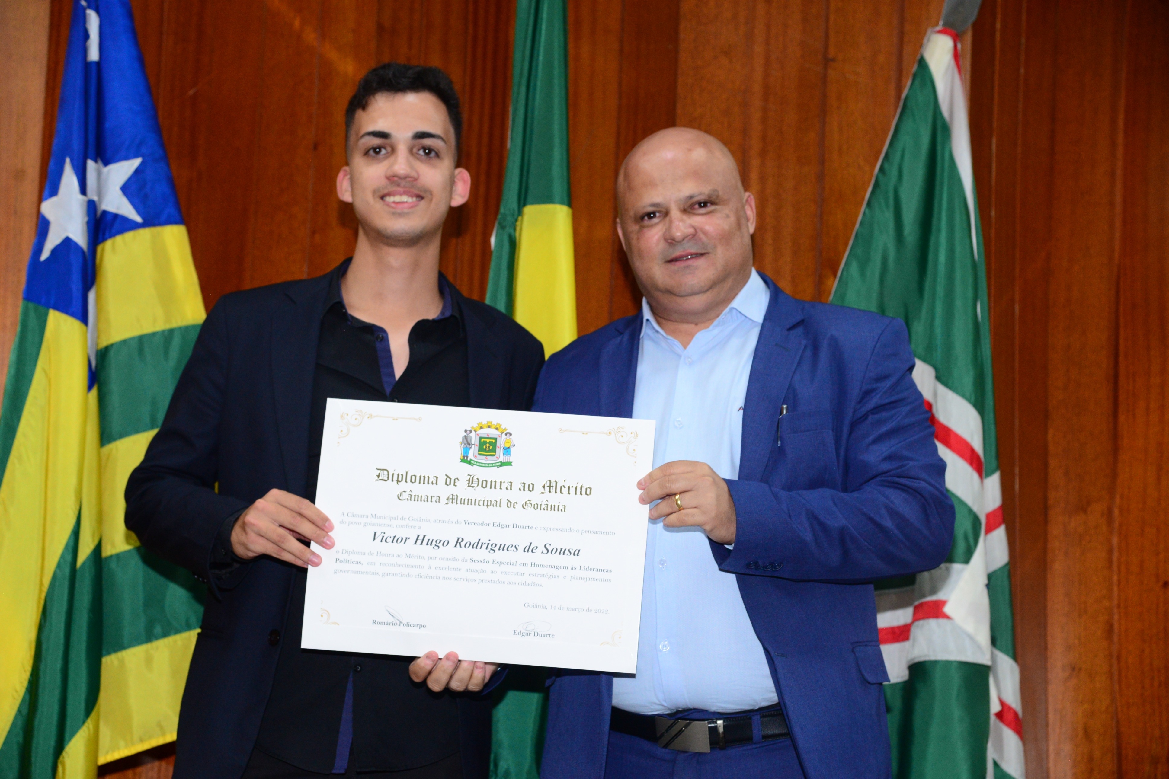 13/3/2023 - Sessão Solene: Entrega de Título de Cidadania Goianiense (Péricles de Castro e Silva; Eduardo Gomes dos Santos)