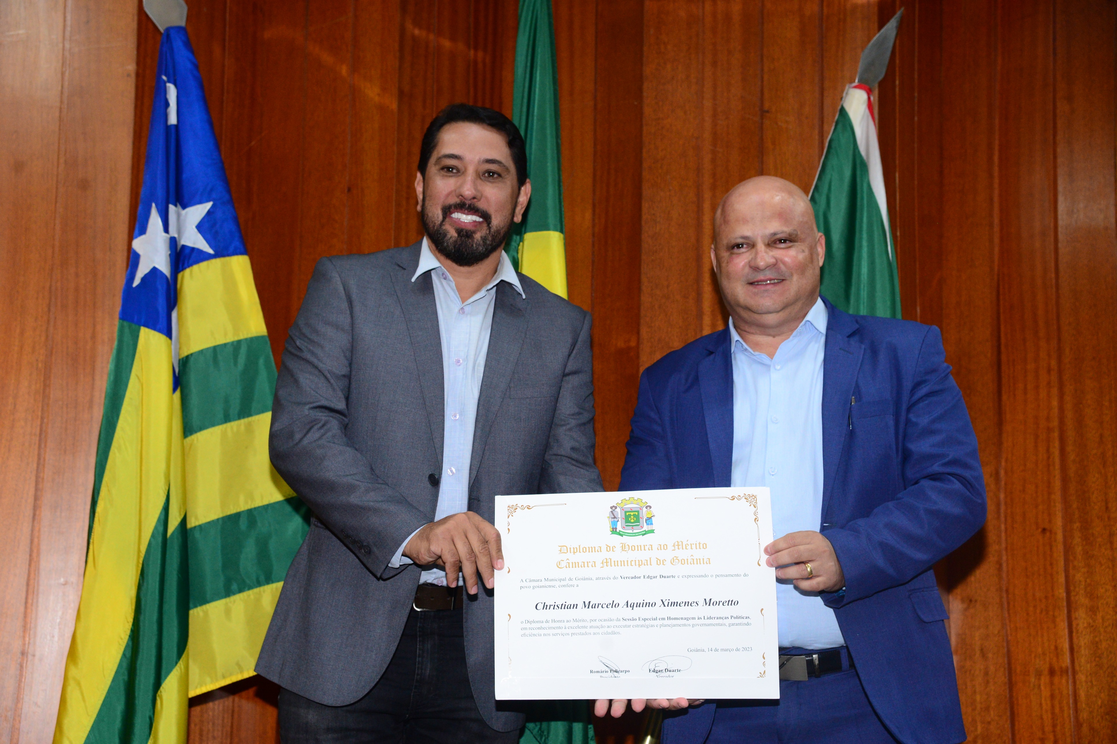 13/3/2023 - Sessão Solene: Entrega de Título de Cidadania Goianiense (Péricles de Castro e Silva; Eduardo Gomes dos Santos)