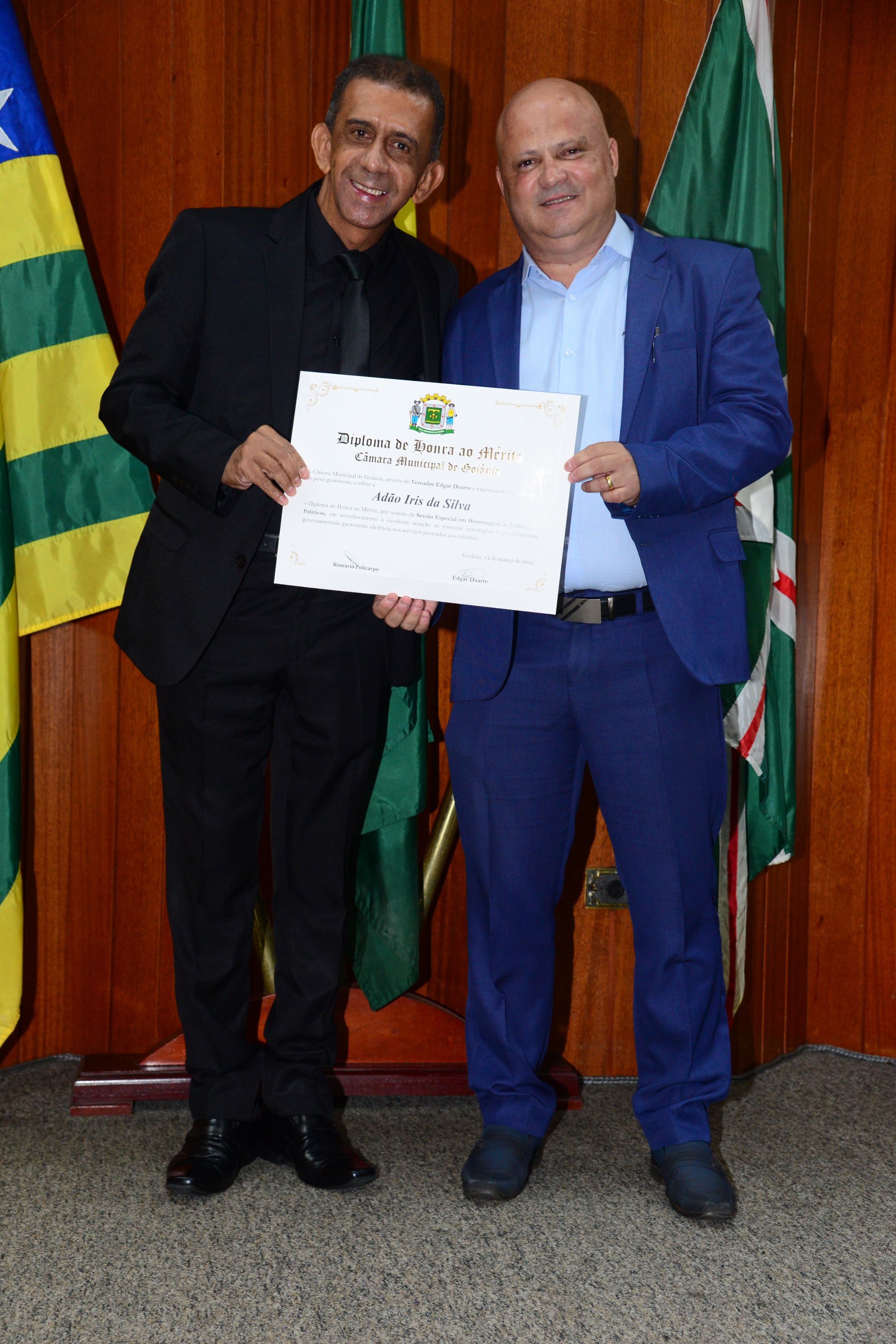 13/3/2023 - Sessão Solene: Entrega de Título de Cidadania Goianiense (Péricles de Castro e Silva; Eduardo Gomes dos Santos)