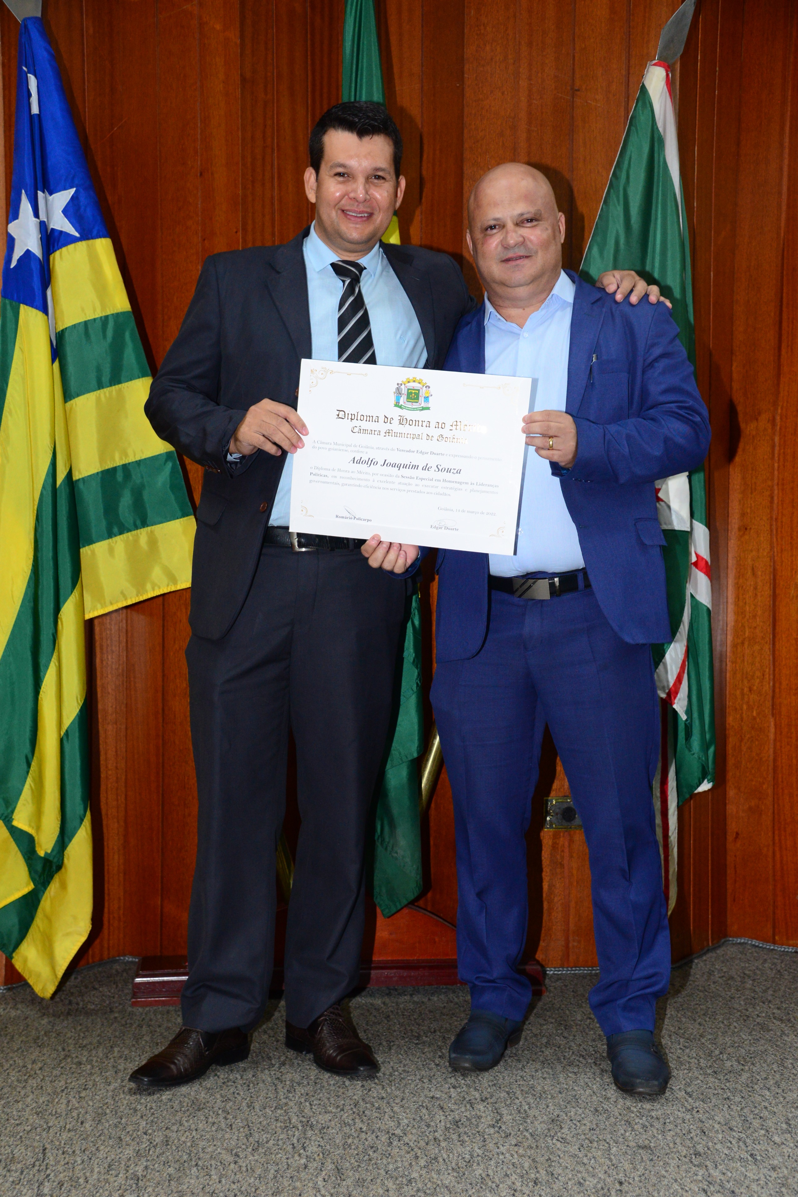 13/3/2023 - Sessão Solene: Entrega de Título de Cidadania Goianiense (Péricles de Castro e Silva; Eduardo Gomes dos Santos)