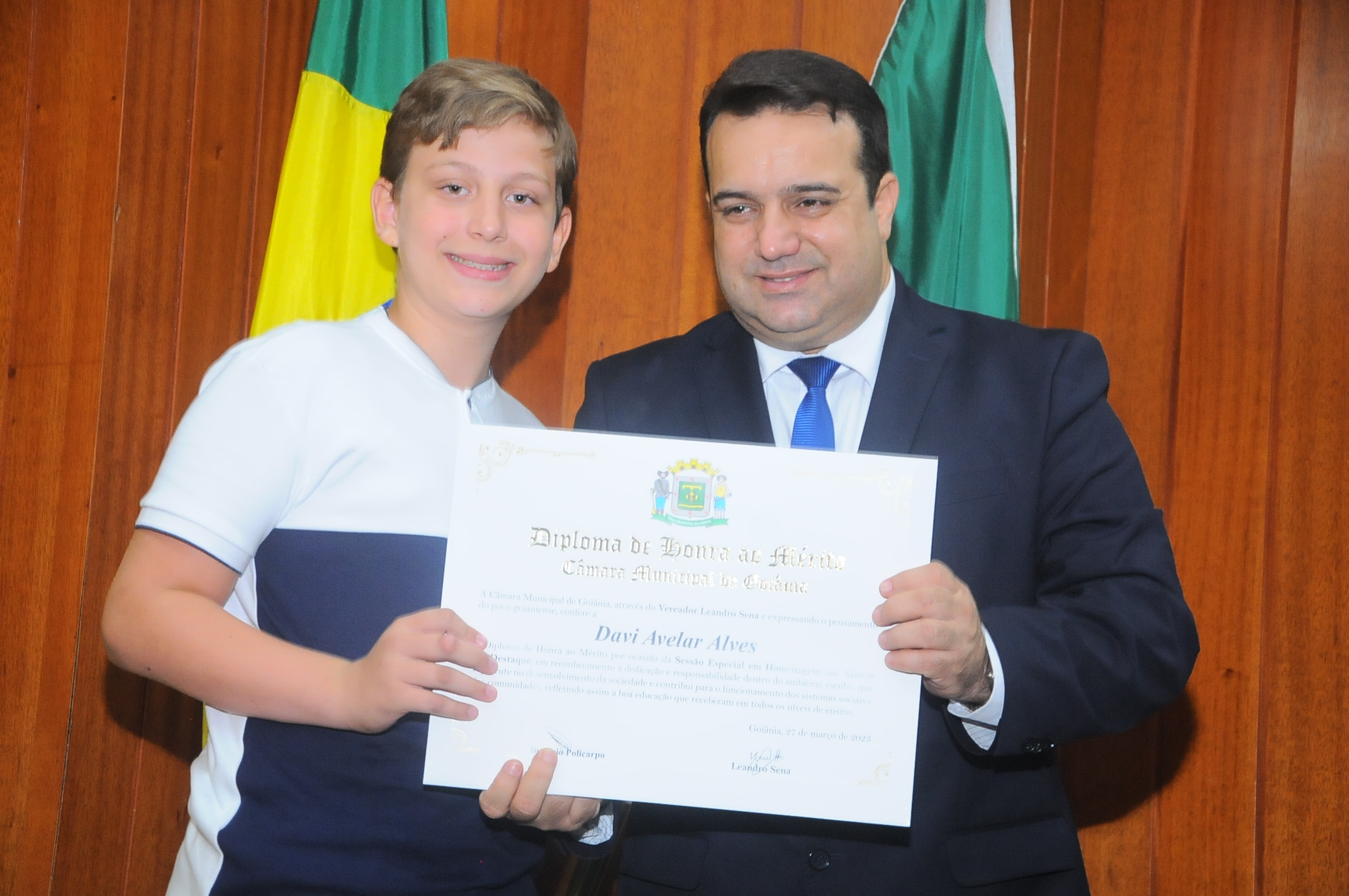 13/3/2023 - Sessão Solene: Entrega de Título de Cidadania Goianiense (Péricles de Castro e Silva; Eduardo Gomes dos Santos)