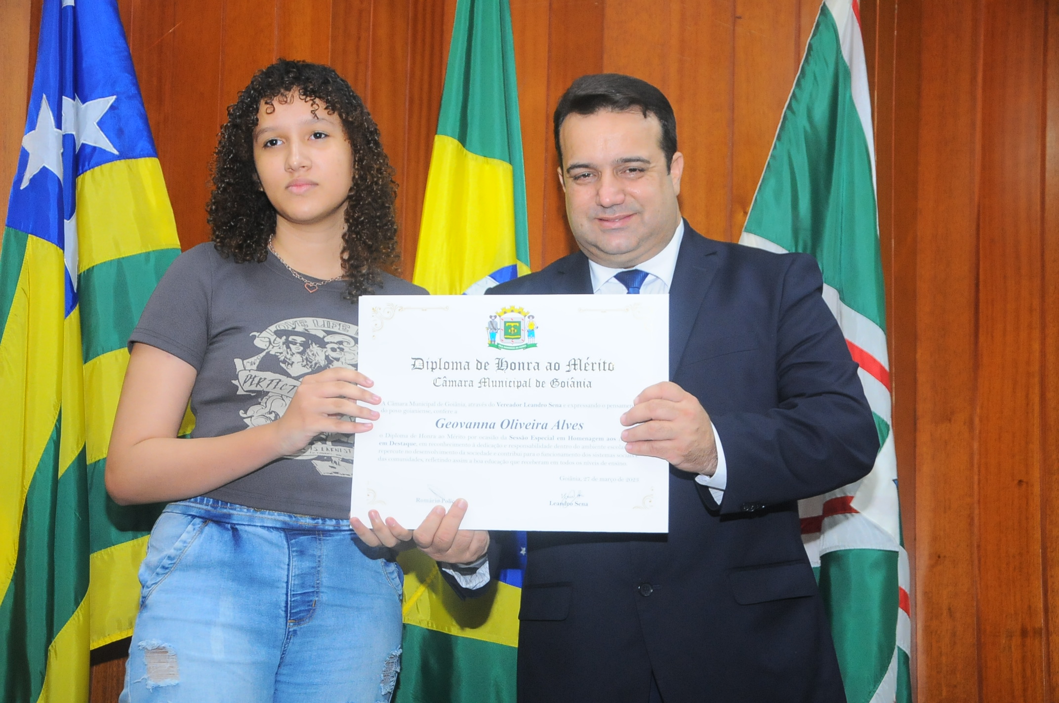 13/3/2023 - Sessão Solene: Entrega de Título de Cidadania Goianiense (Péricles de Castro e Silva; Eduardo Gomes dos Santos)