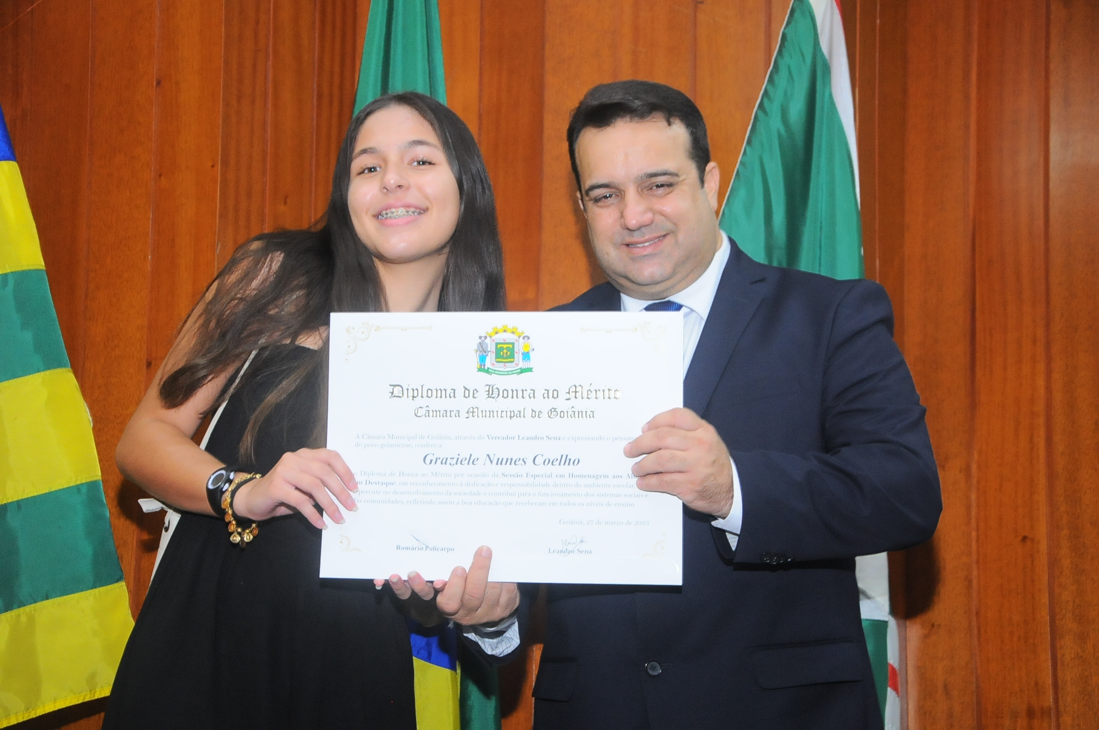13/3/2023 - Sessão Solene: Entrega de Título de Cidadania Goianiense (Péricles de Castro e Silva; Eduardo Gomes dos Santos)