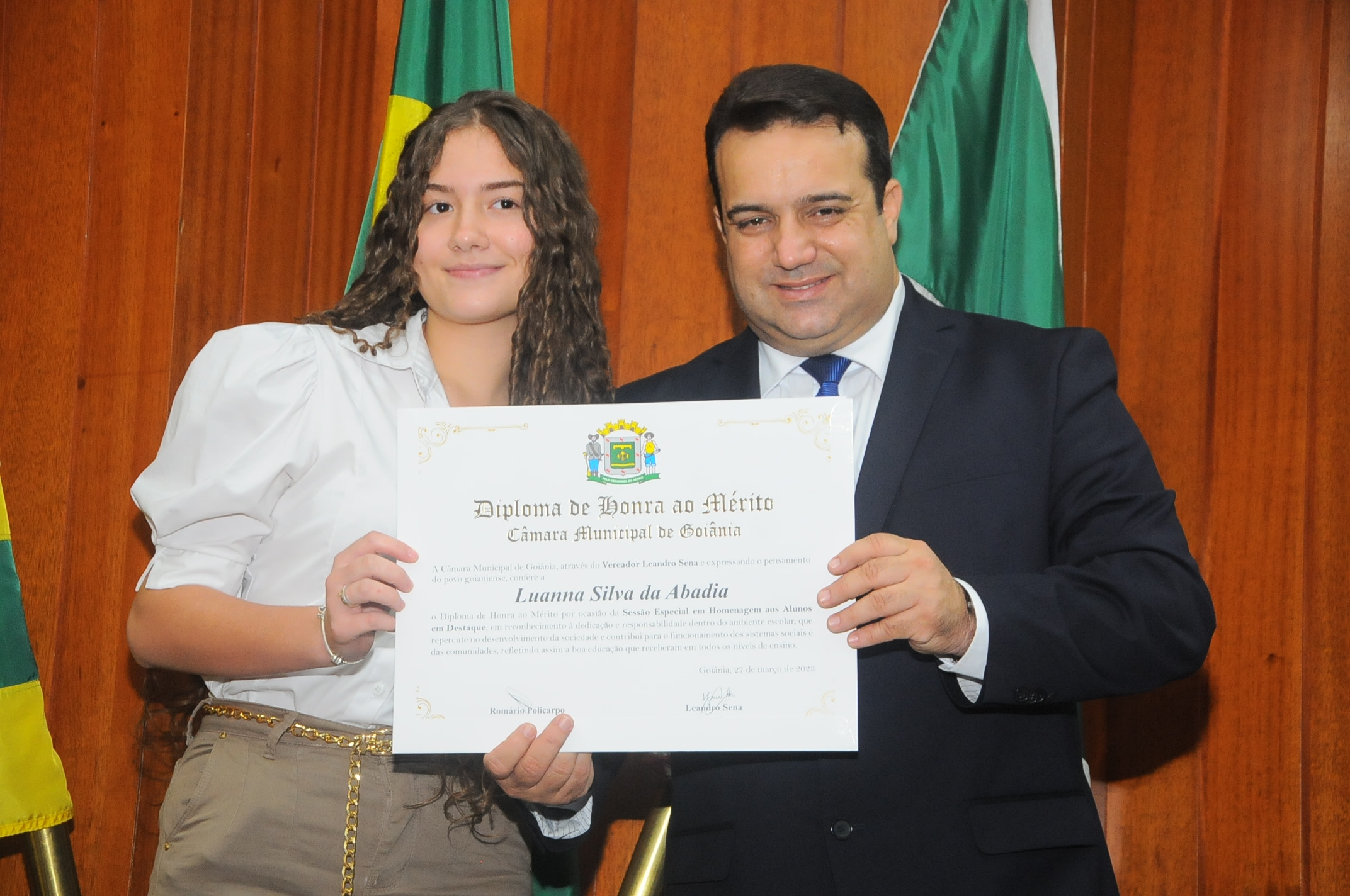 13/3/2023 - Sessão Solene: Entrega de Título de Cidadania Goianiense (Péricles de Castro e Silva; Eduardo Gomes dos Santos)