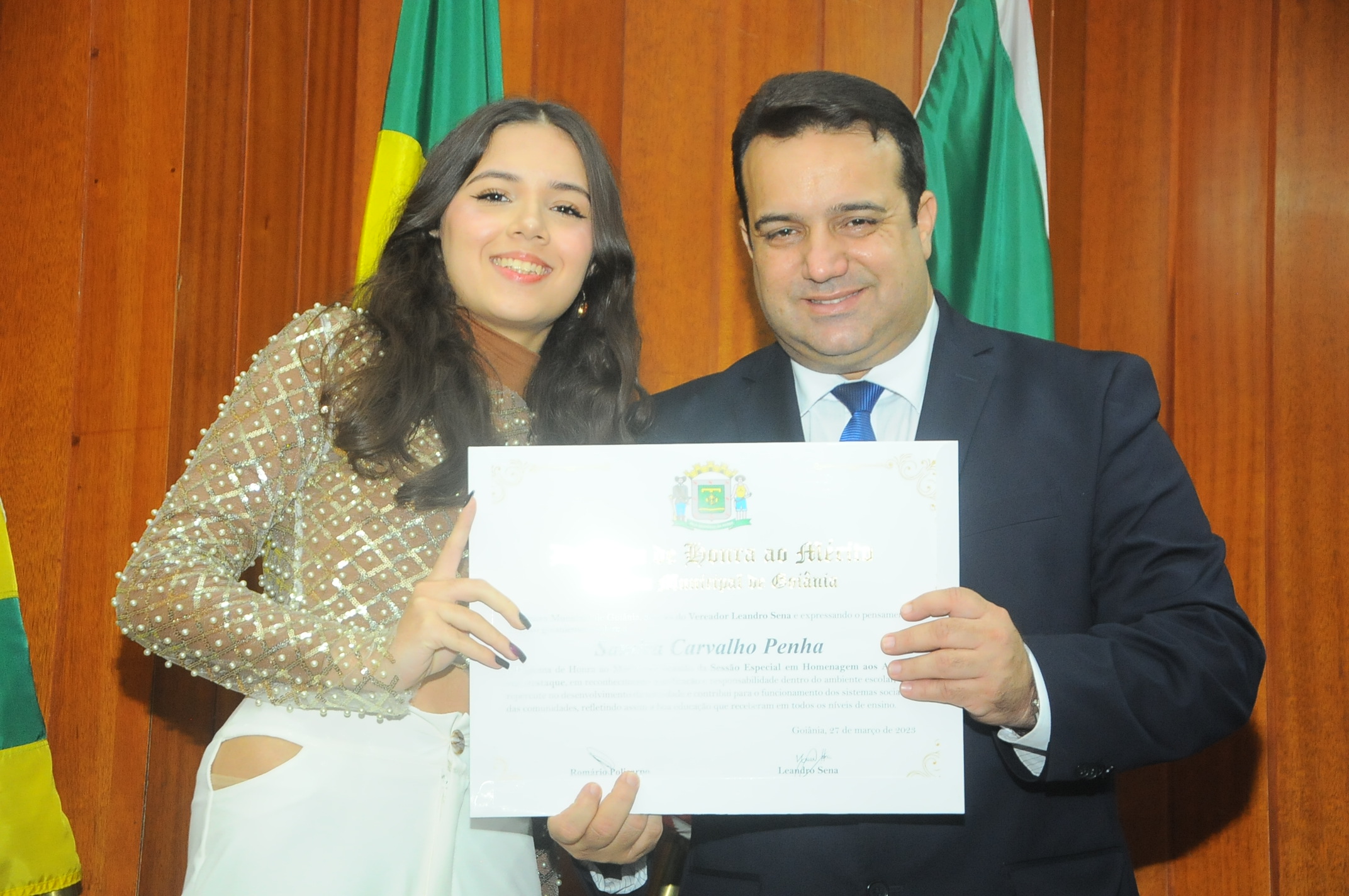 13/3/2023 - Sessão Solene: Entrega de Título de Cidadania Goianiense (Péricles de Castro e Silva; Eduardo Gomes dos Santos)