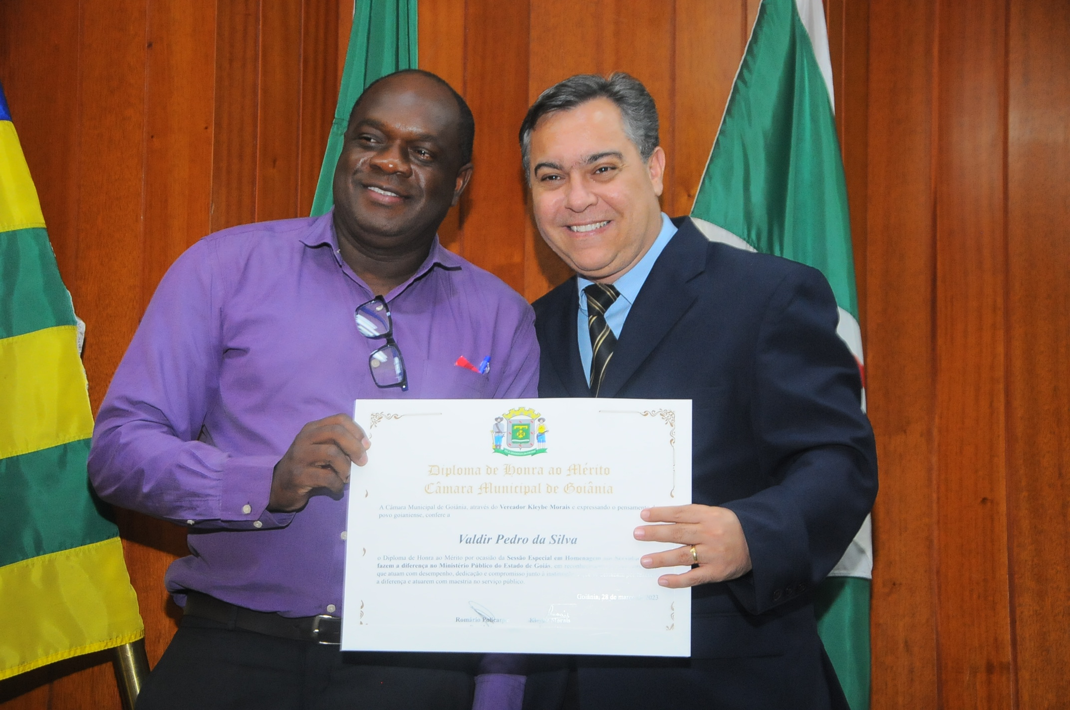 13/3/2023 - Sessão Solene: Entrega de Título de Cidadania Goianiense (Péricles de Castro e Silva; Eduardo Gomes dos Santos)