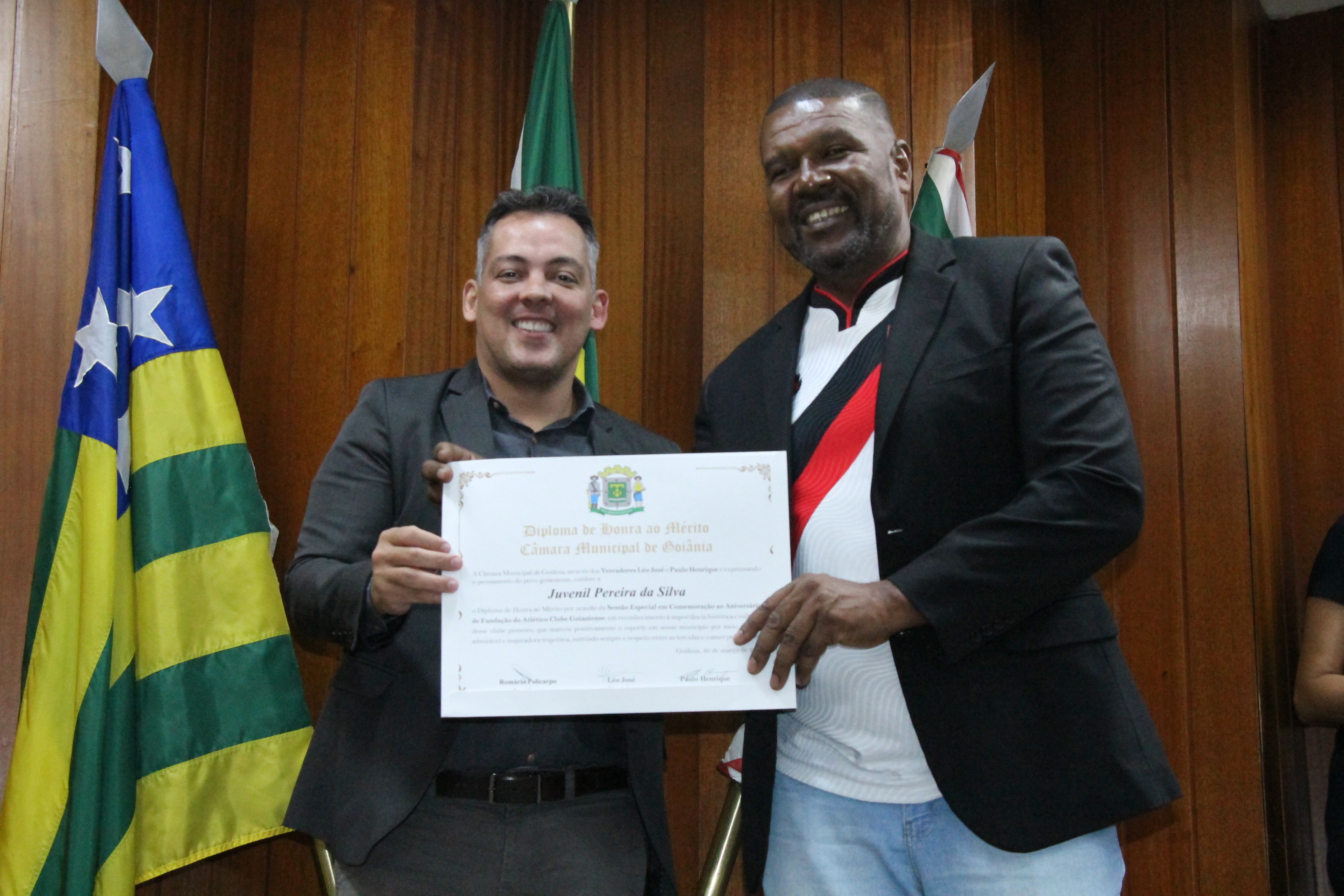 13/3/2023 - Sessão Solene: Entrega de Título de Cidadania Goianiense (Péricles de Castro e Silva; Eduardo Gomes dos Santos)