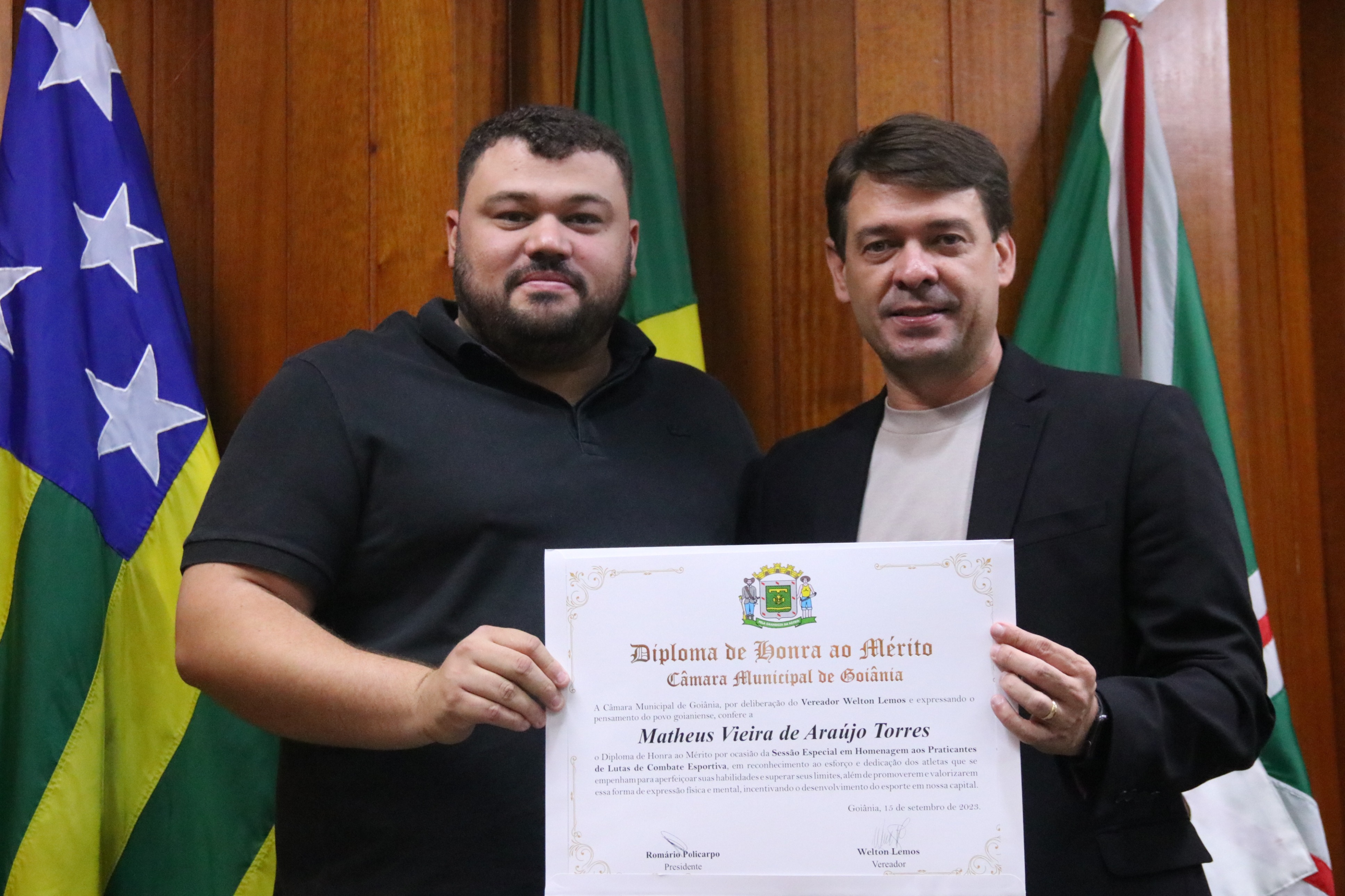 4/9/2023 - Entrega de Título de Cidadão Goianiense (Srs. Marco Antônio Bravo de Azevedo Gonzaga e Adailton Alexandre Silva de Brito)