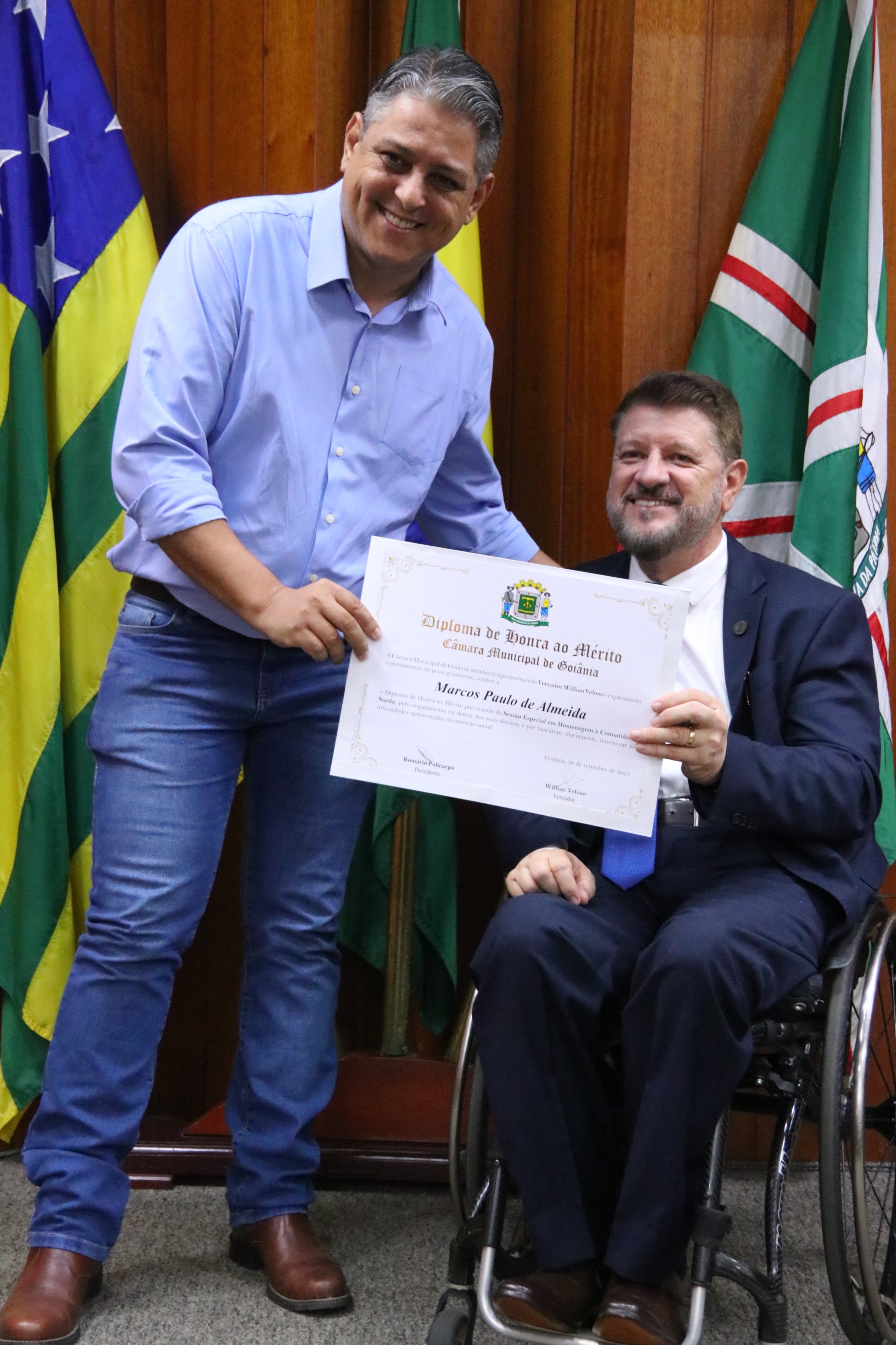 4/9/2023 - Entrega de Título de Cidadão Goianiense (Srs. Marco Antônio Bravo de Azevedo Gonzaga e Adailton Alexandre Silva de Brito)