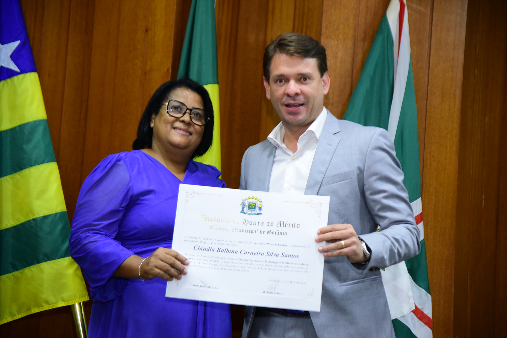 24/4/2024 - Sessão Solene: Entrega de Título Honorífico de Cidadania Goianiense (Sra. Lêda Leal de Souza)