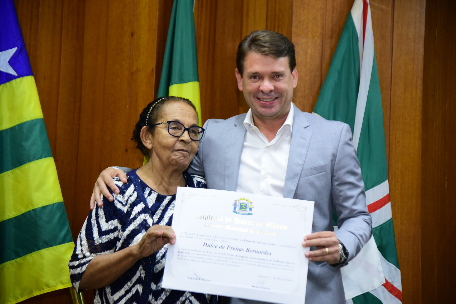 24/4/2024 - Sessão Solene: Entrega de Título Honorífico de Cidadania Goianiense (Sra. Lêda Leal de Souza)