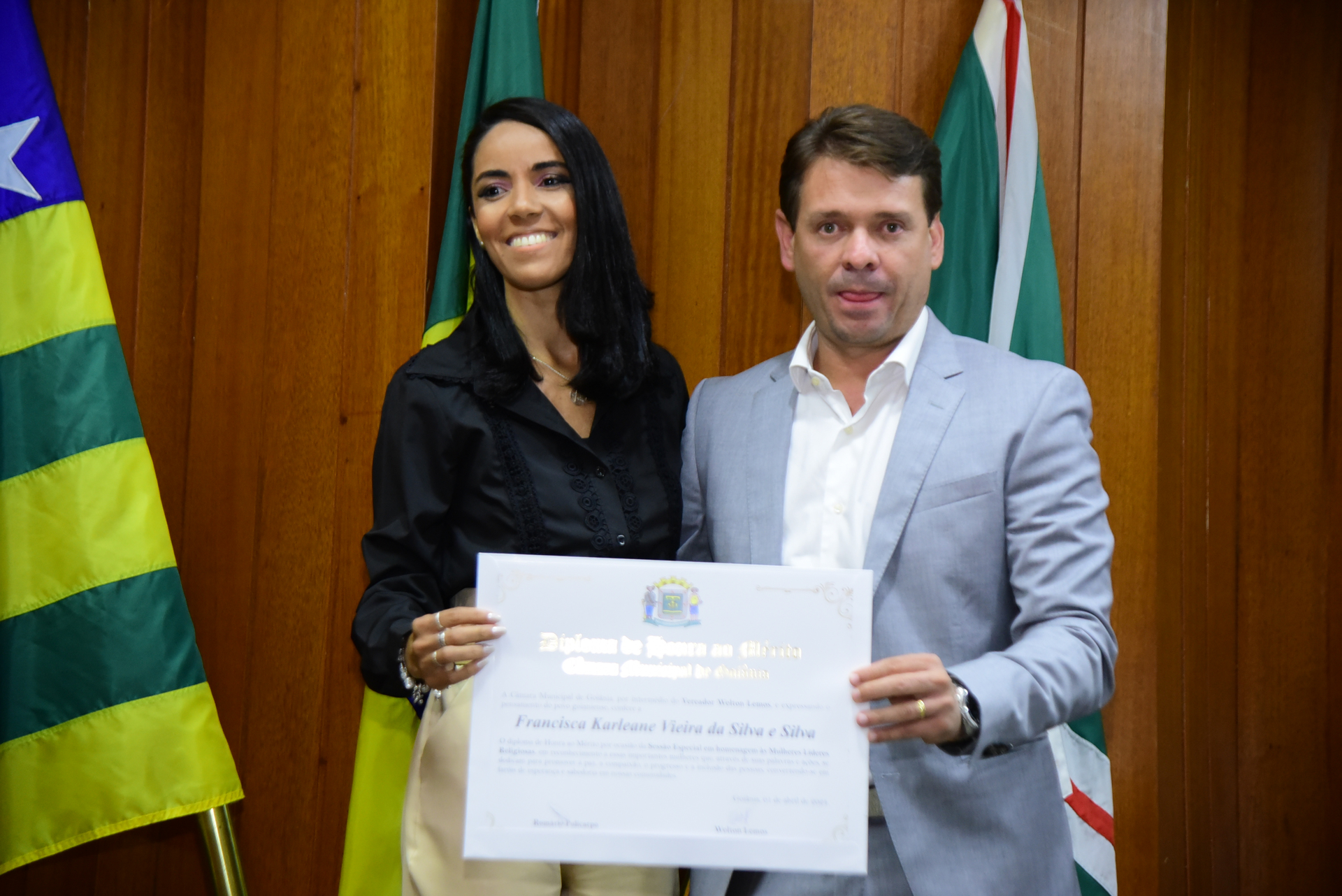 27/4/2024 - Sessão Solene: Entrega de Título de Cidadania Goianiense (Sra. Graziella Flávia Pereira Pires Neiva)