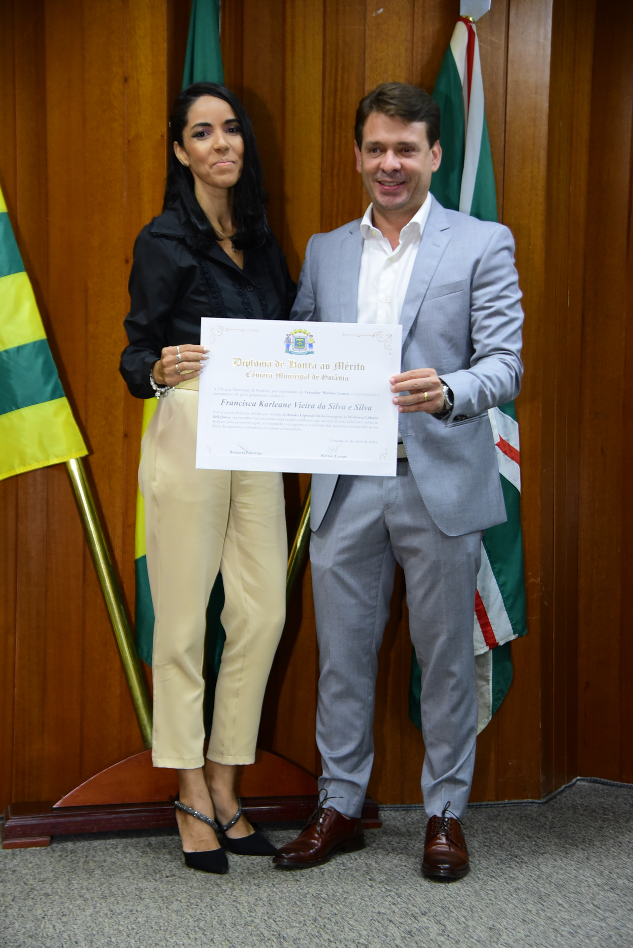 27/4/2024 - Sessão Solene: Entrega de Título de Cidadania Goianiense (Sra. Graziella Flávia Pereira Pires Neiva)