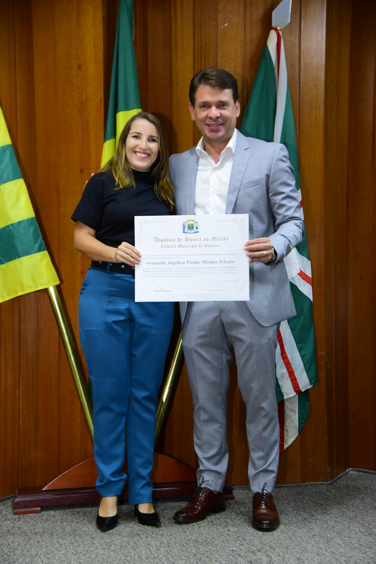 27/4/2024 - Sessão Solene: Entrega de Título de Cidadania Goianiense (Sra. Graziella Flávia Pereira Pires Neiva)