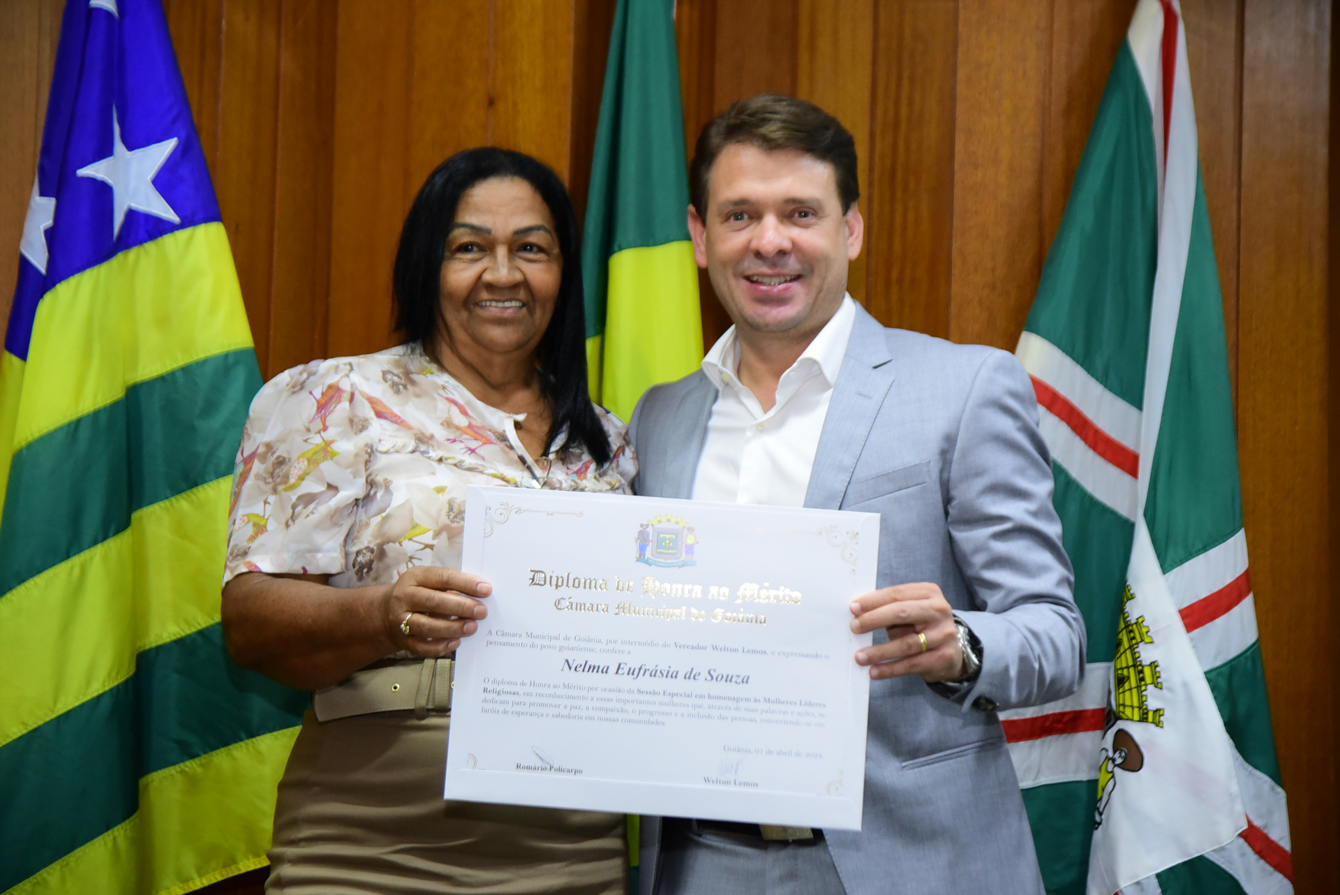 24/4/2024 - Sessão Solene: Entrega de Título Honorífico de Cidadania Goianiense (Sra. Lêda Leal de Souza)