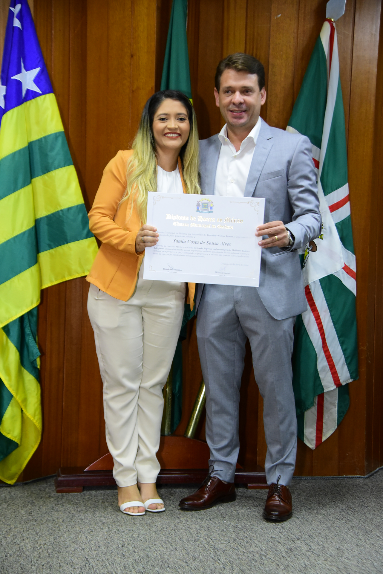 27/4/2024 - Sessão Solene: Entrega de Título de Cidadania Goianiense (Sra. Graziella Flávia Pereira Pires Neiva)