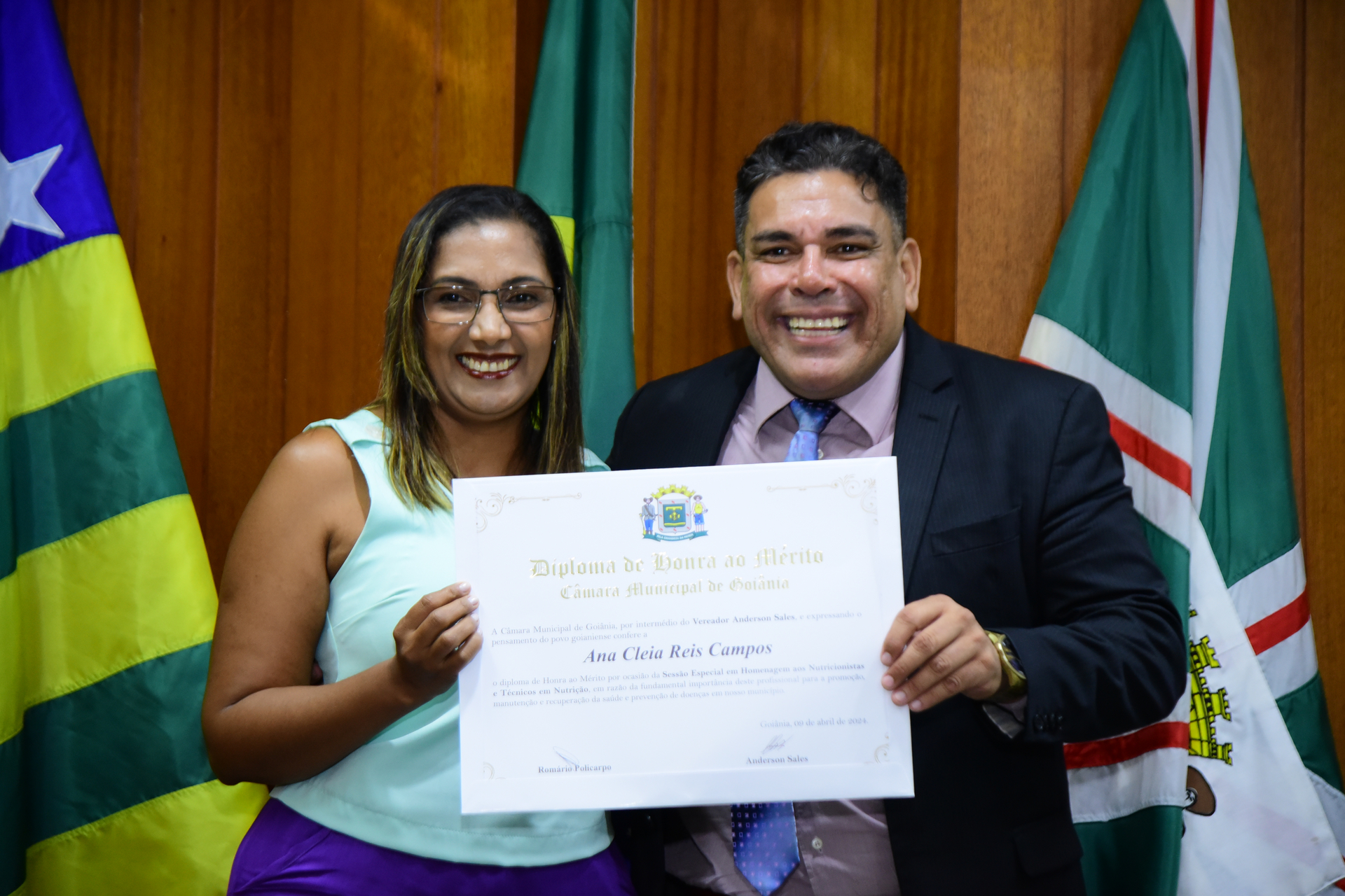 27/4/2024 - Sessão Solene: Entrega de Título de Cidadania Goianiense (Sra. Graziella Flávia Pereira Pires Neiva)