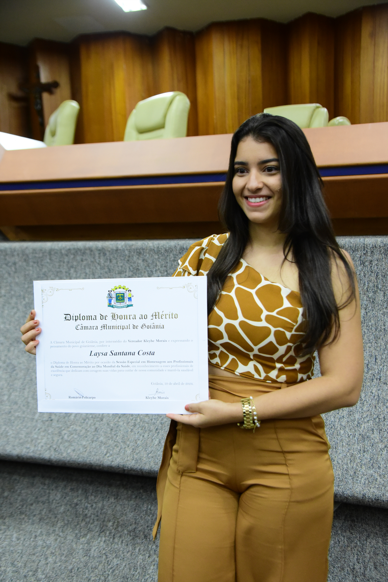 27/4/2024 - Sessão Solene: Entrega de Título de Cidadania Goianiense (Sra. Graziella Flávia Pereira Pires Neiva)