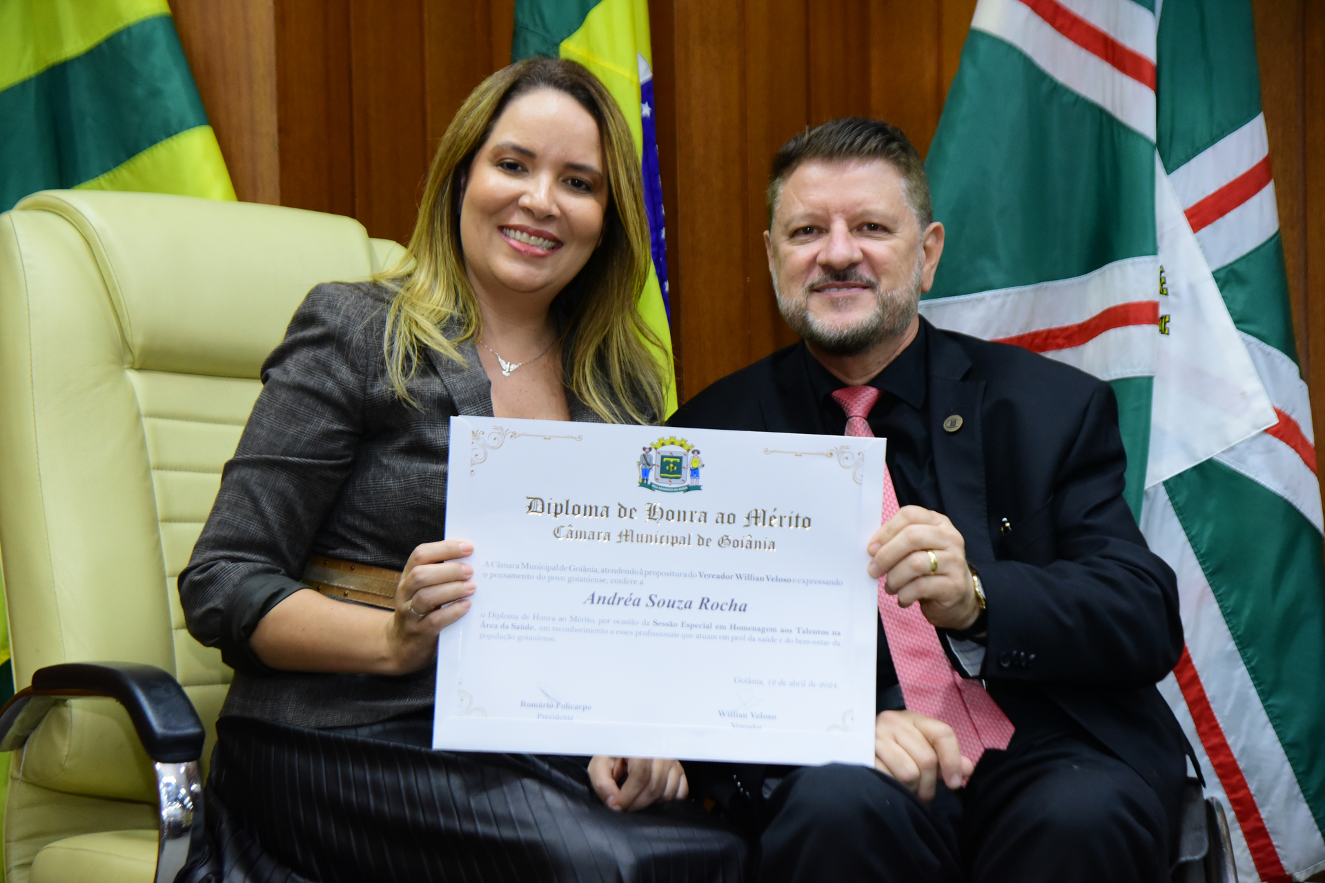 27/4/2024 - Sessão Solene: Entrega de Título de Cidadania Goianiense (Sra. Graziella Flávia Pereira Pires Neiva)
