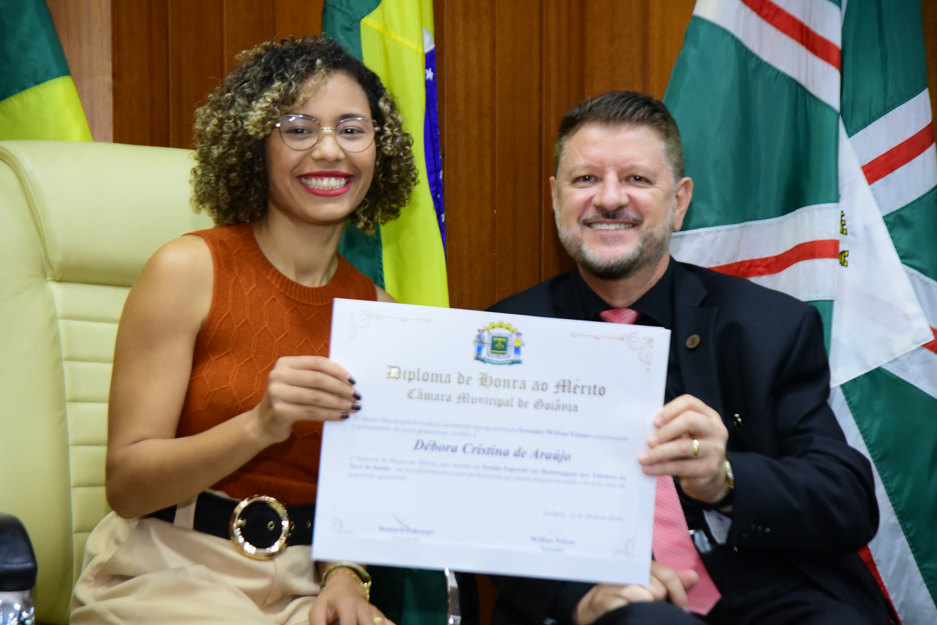 27/4/2024 - Sessão Solene: Entrega de Título de Cidadania Goianiense (Sra. Graziella Flávia Pereira Pires Neiva)