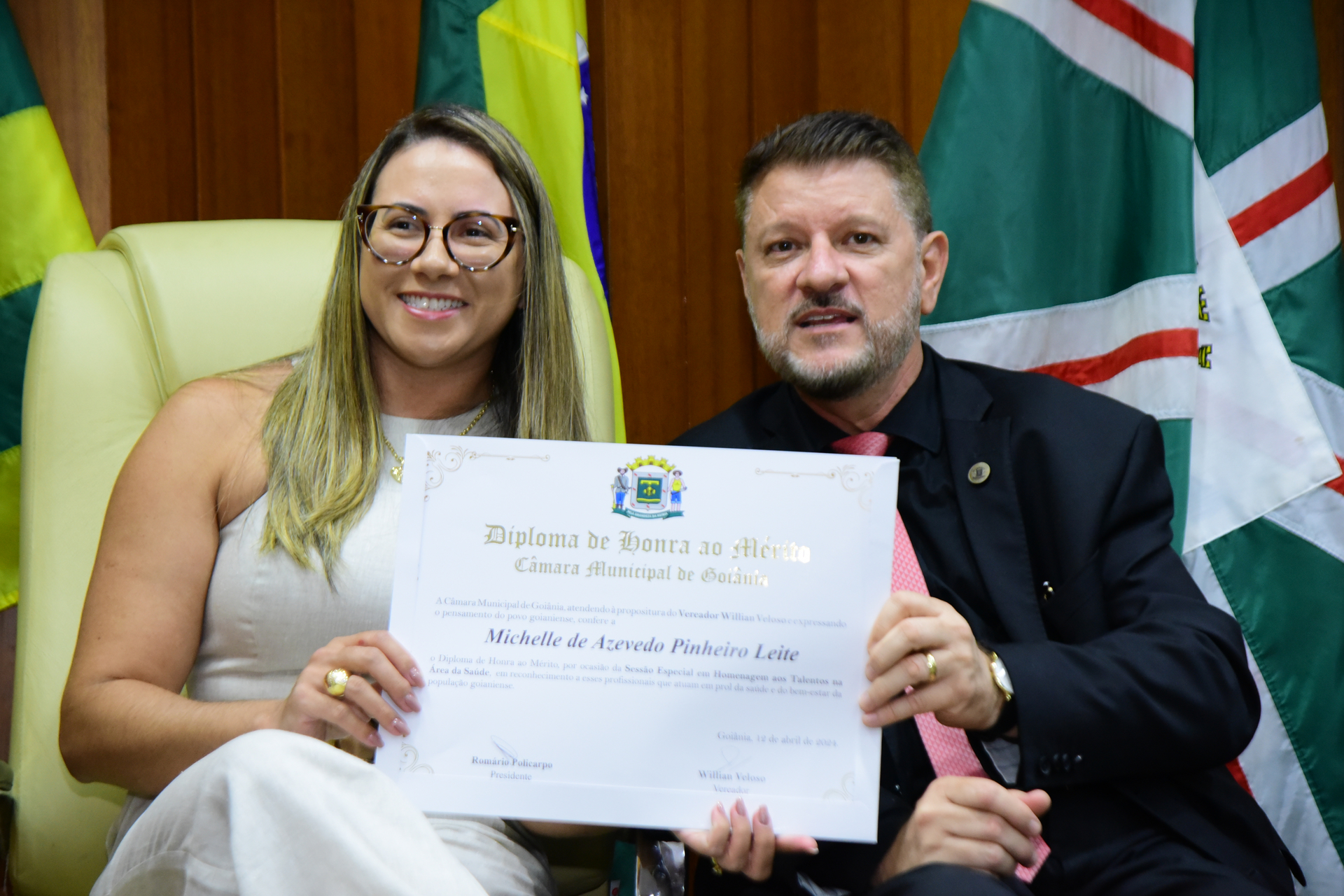 27/4/2024 - Sessão Solene: Entrega de Título de Cidadania Goianiense (Sra. Graziella Flávia Pereira Pires Neiva)