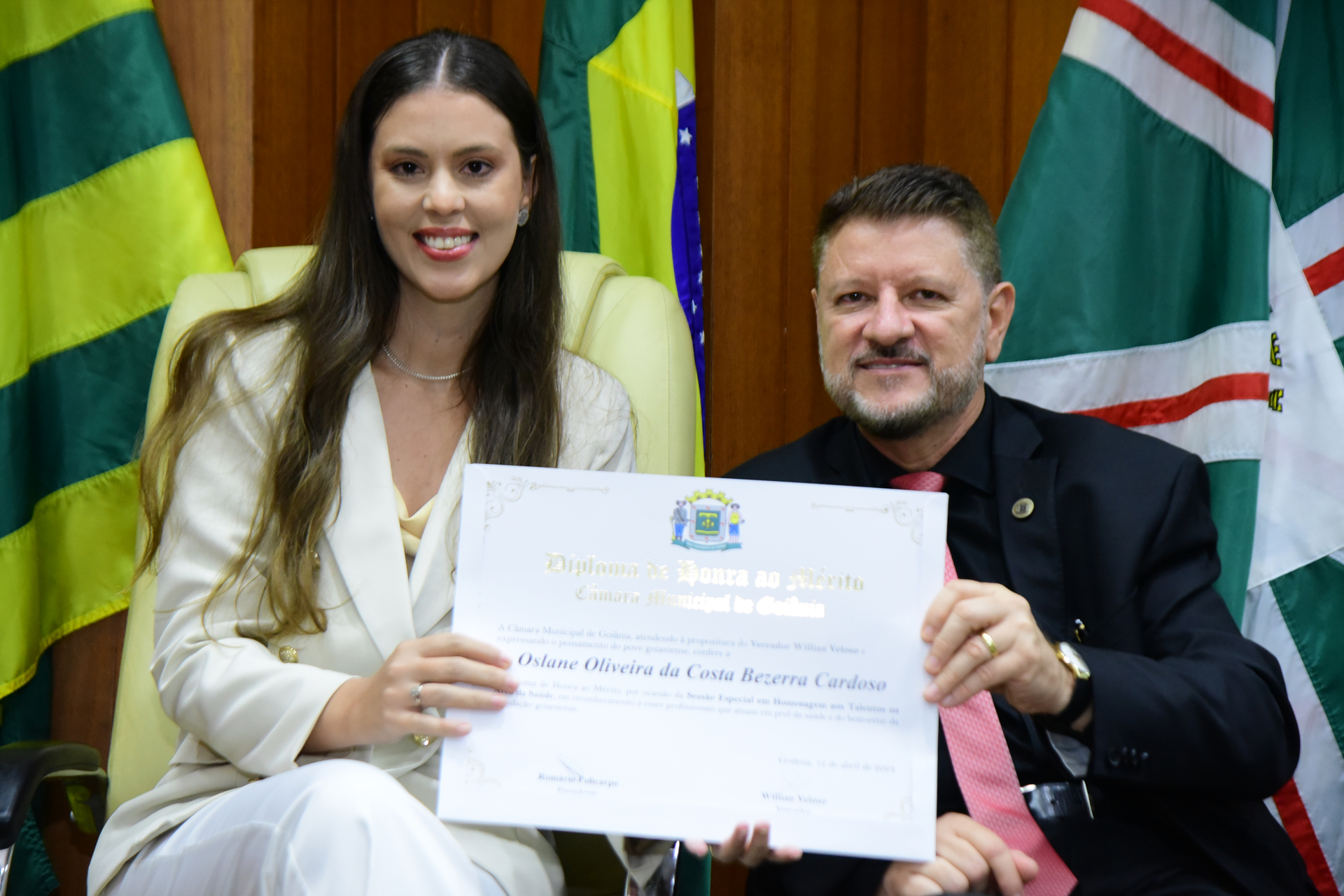 27/4/2024 - Sessão Solene: Entrega de Título de Cidadania Goianiense (Sra. Graziella Flávia Pereira Pires Neiva)
