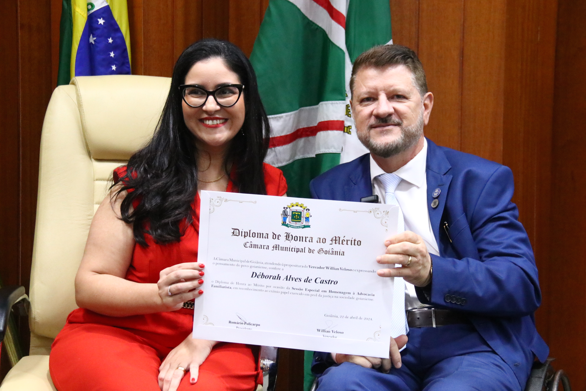 27/4/2024 - Sessão Solene: Entrega de Título de Cidadania Goianiense (Sra. Graziella Flávia Pereira Pires Neiva)