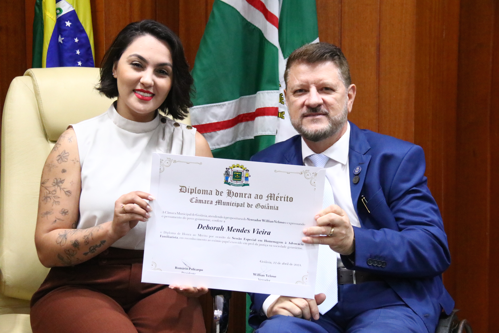 27/4/2024 - Sessão Solene: Entrega de Título de Cidadania Goianiense (Sra. Graziella Flávia Pereira Pires Neiva)