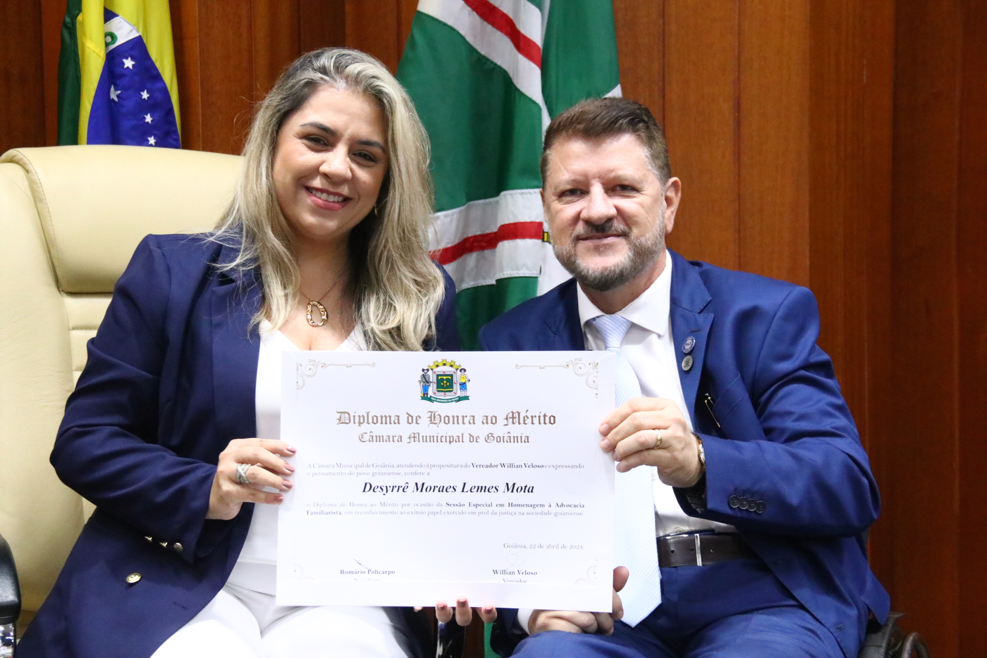 27/4/2024 - Sessão Solene: Entrega de Título de Cidadania Goianiense (Sra. Graziella Flávia Pereira Pires Neiva)