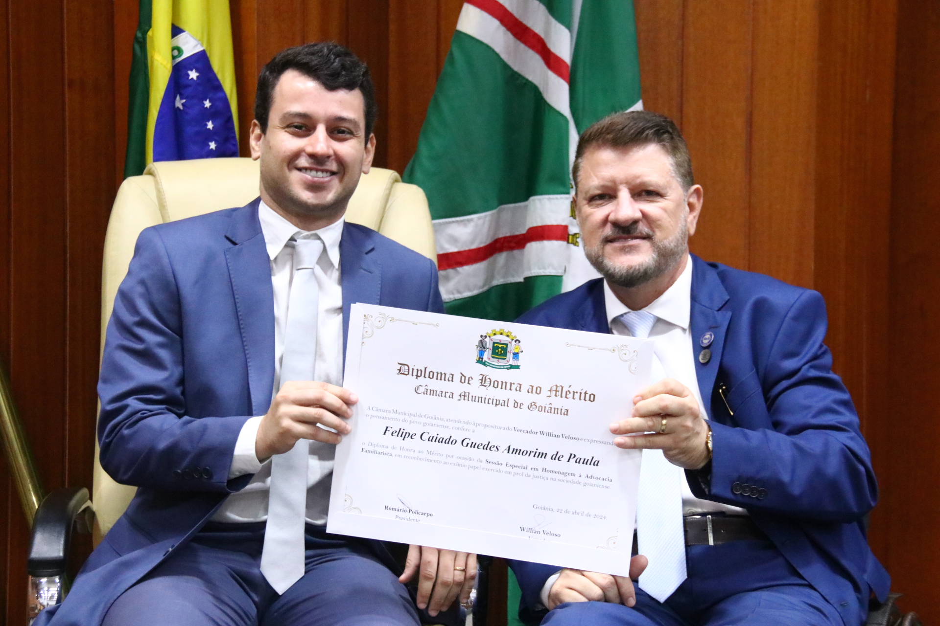 19/4/2024 - Sessão Solene: Entrega De Título De Cidadania Goianiense (Sr. Felipe Simon Pimentel Canales)