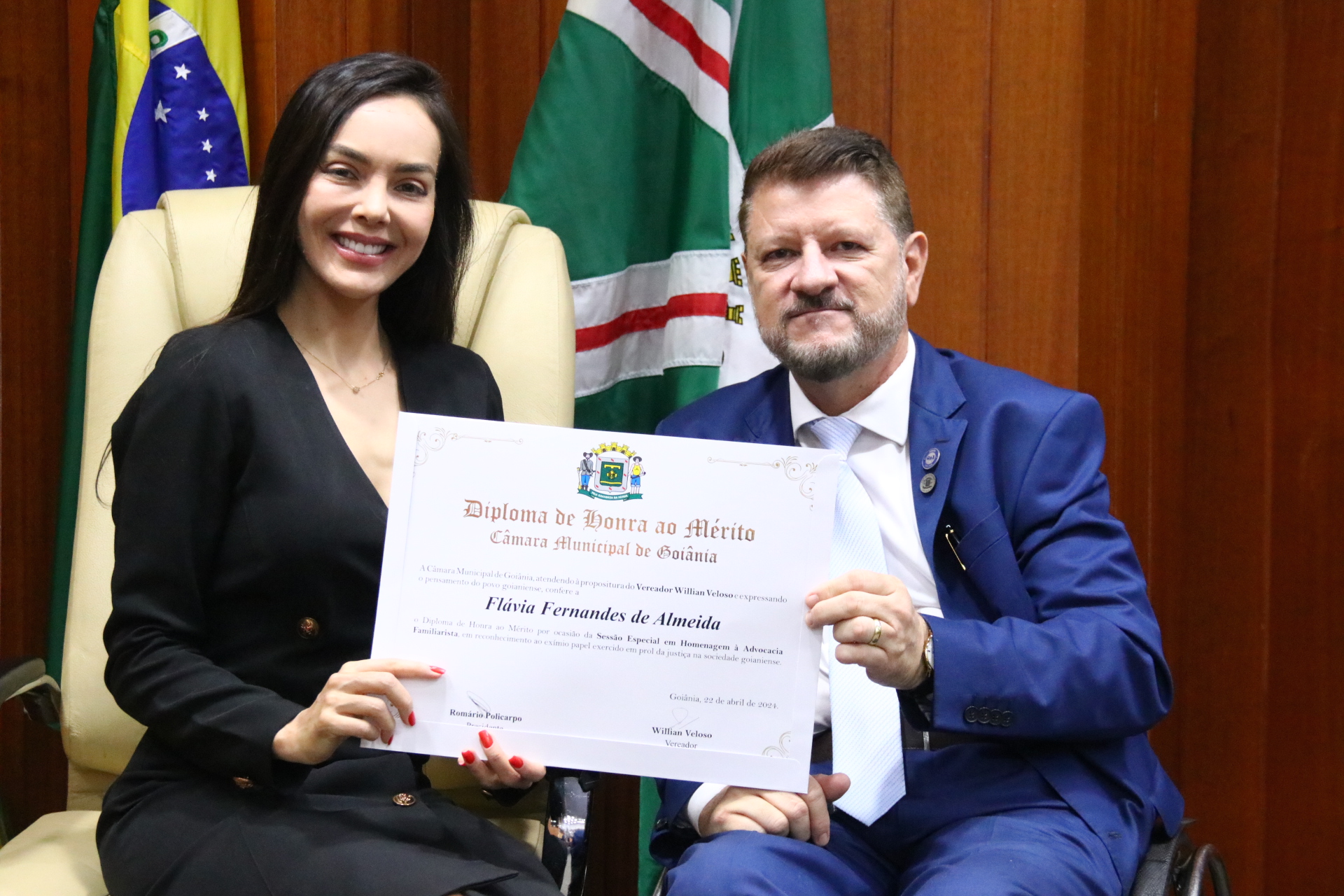 27/4/2024 - Sessão Solene: Entrega de Título de Cidadania Goianiense (Sra. Graziella Flávia Pereira Pires Neiva)