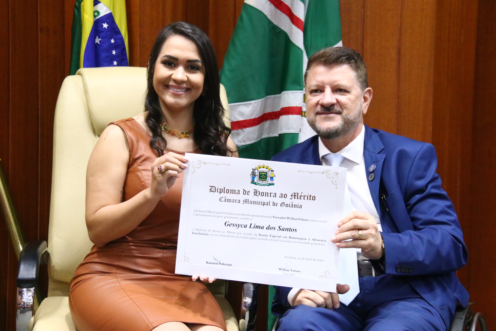 27/4/2024 - Sessão Solene: Entrega de Título de Cidadania Goianiense (Sra. Graziella Flávia Pereira Pires Neiva)