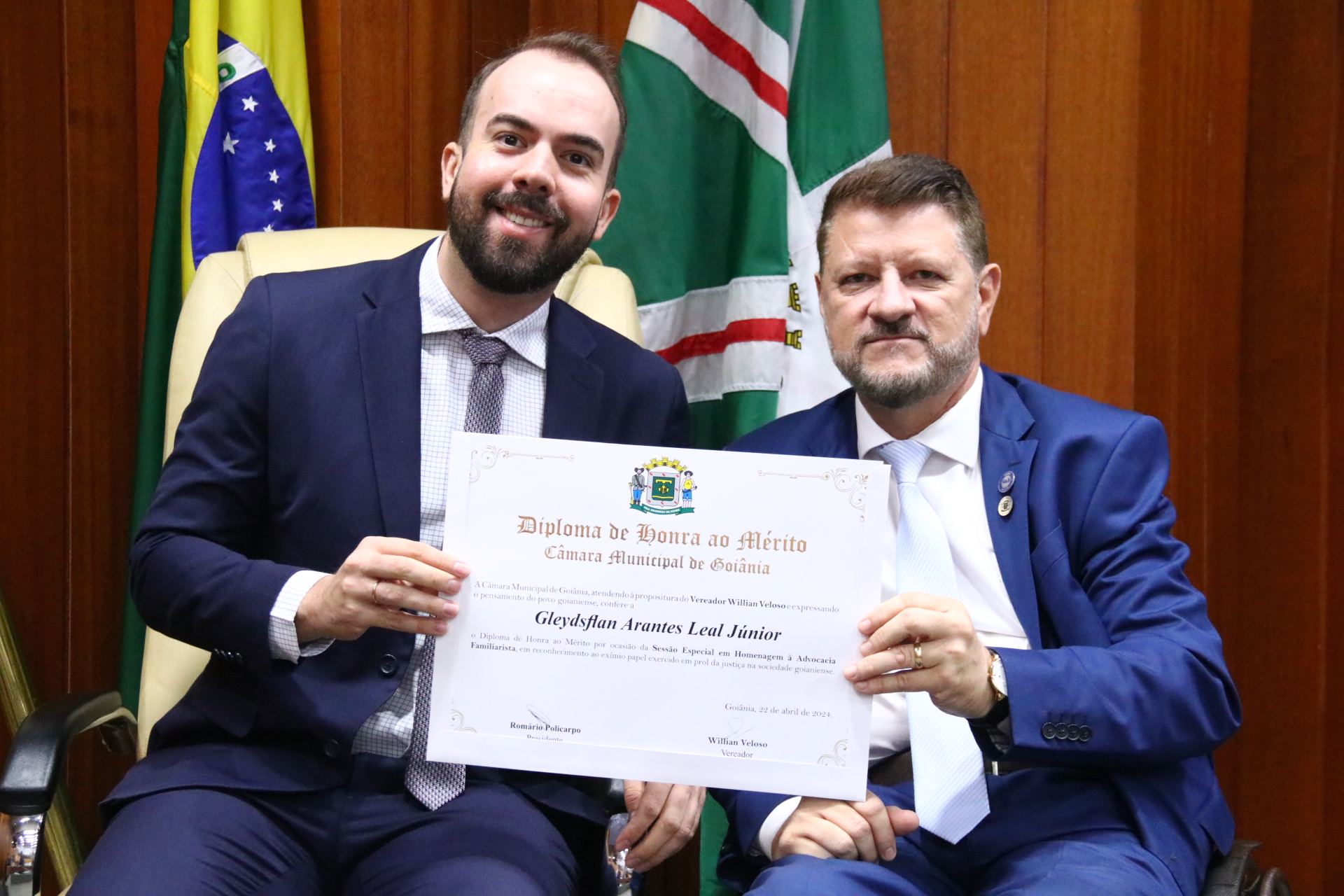 19/4/2024 - Sessão Solene: Entrega De Título De Cidadania Goianiense (Sr. Felipe Simon Pimentel Canales)
