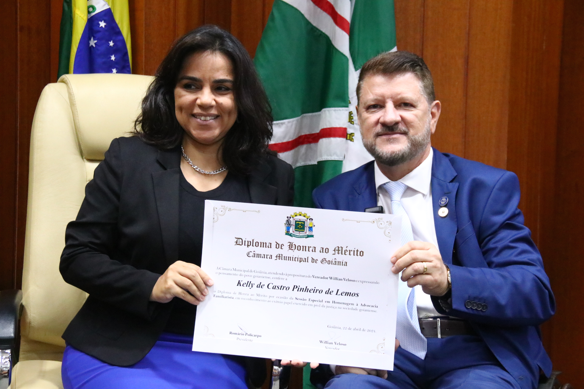 27/4/2024 - Sessão Solene: Entrega de Título de Cidadania Goianiense (Sra. Graziella Flávia Pereira Pires Neiva)