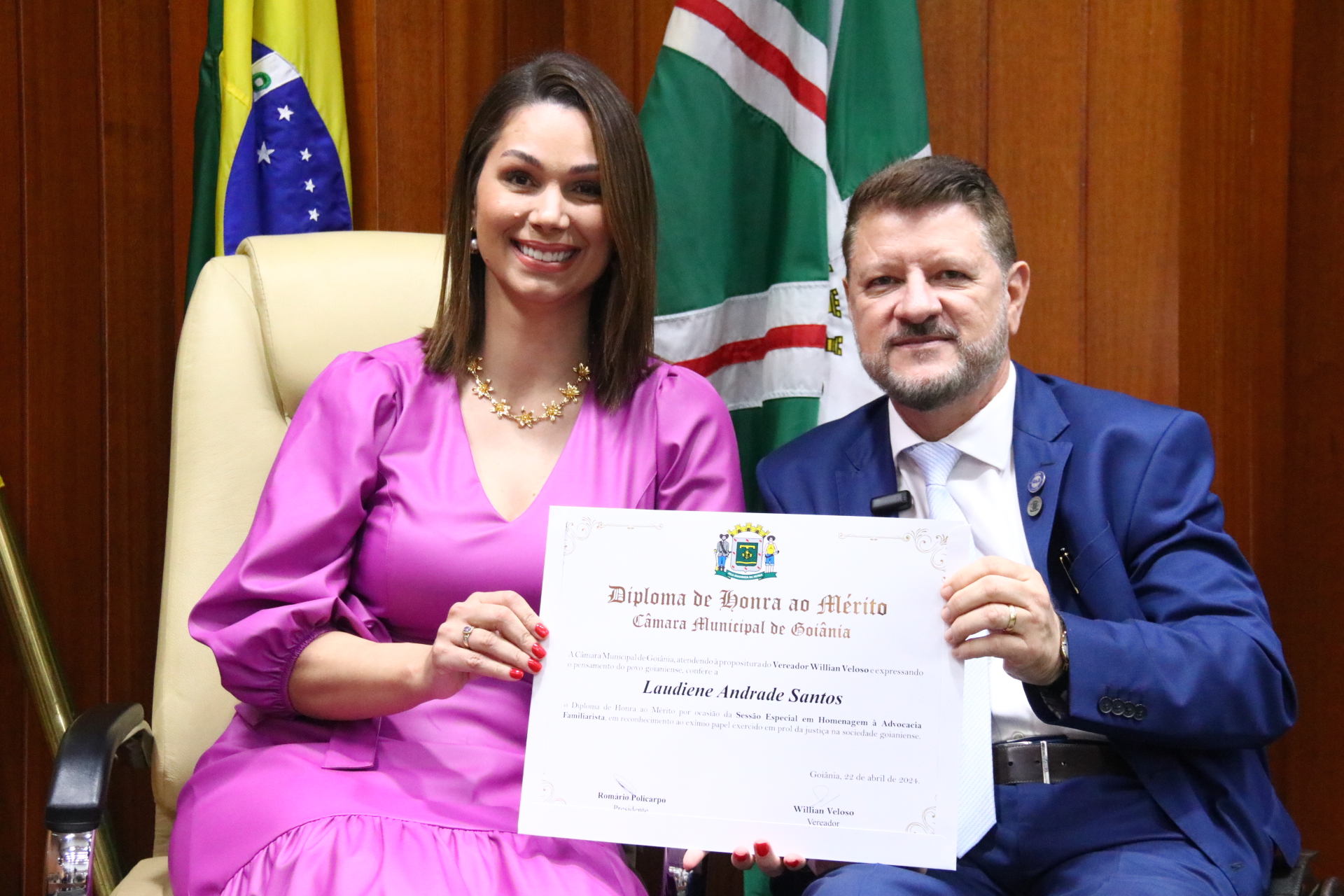 27/4/2024 - Sessão Solene: Entrega de Título de Cidadania Goianiense (Sra. Graziella Flávia Pereira Pires Neiva)