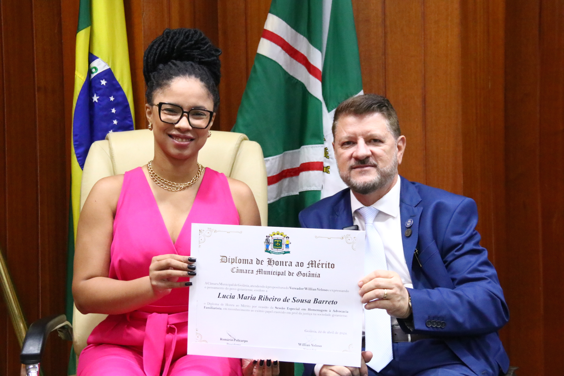 27/4/2024 - Sessão Solene: Entrega de Título de Cidadania Goianiense (Sra. Graziella Flávia Pereira Pires Neiva)