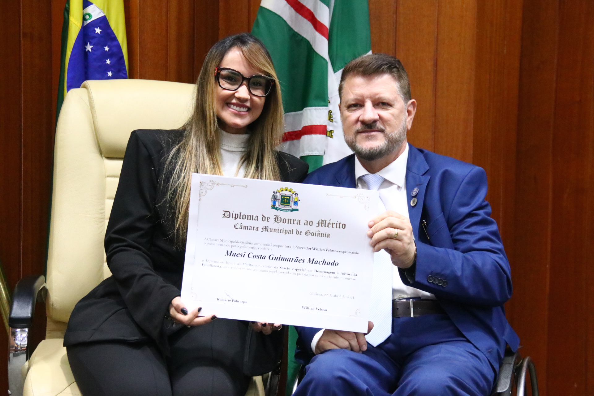 27/4/2024 - Sessão Solene: Entrega de Título de Cidadania Goianiense (Sra. Graziella Flávia Pereira Pires Neiva)